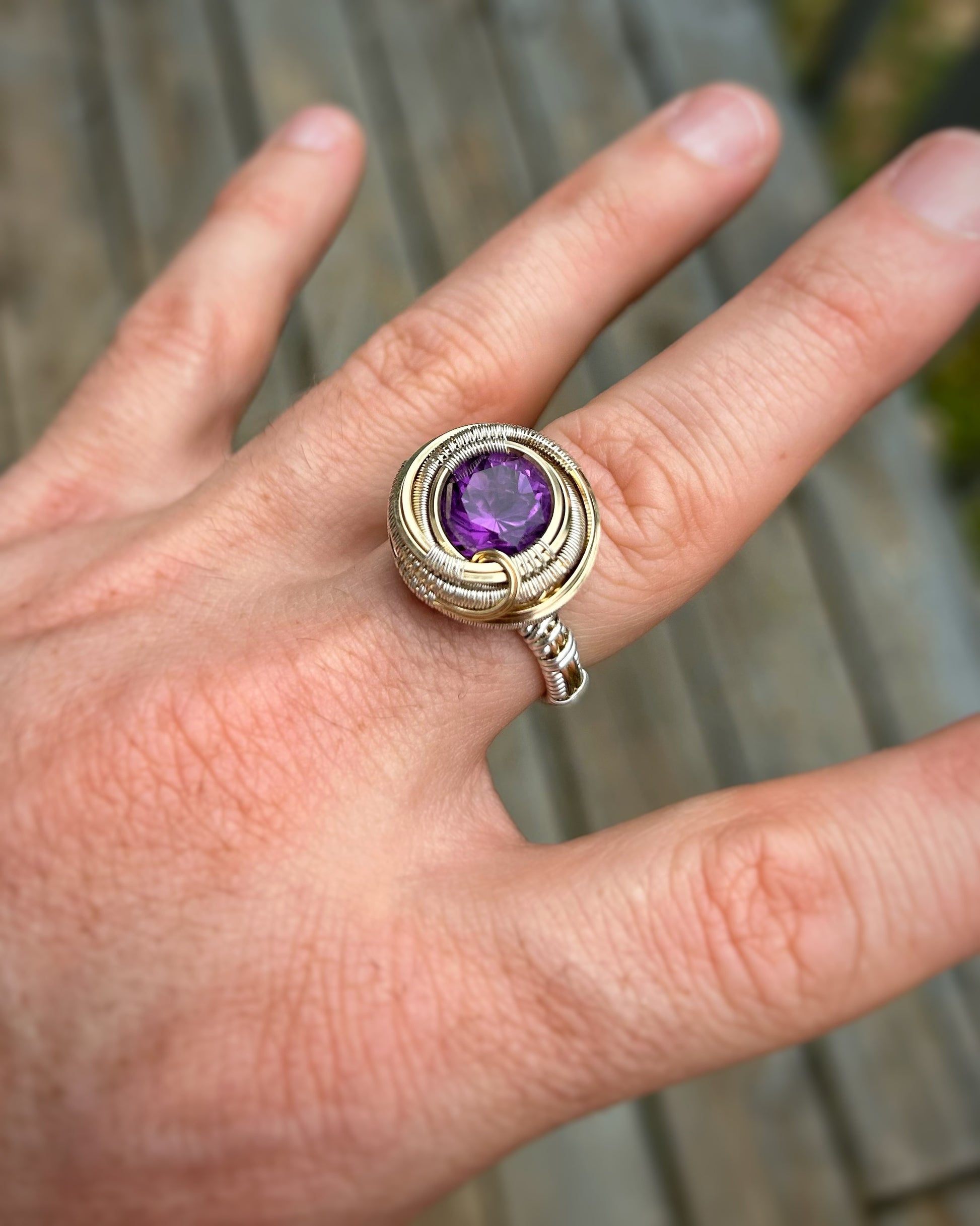 Faceted Amethyst, Size 9, in Sterling Silver and 14k Yellow Gold Fill