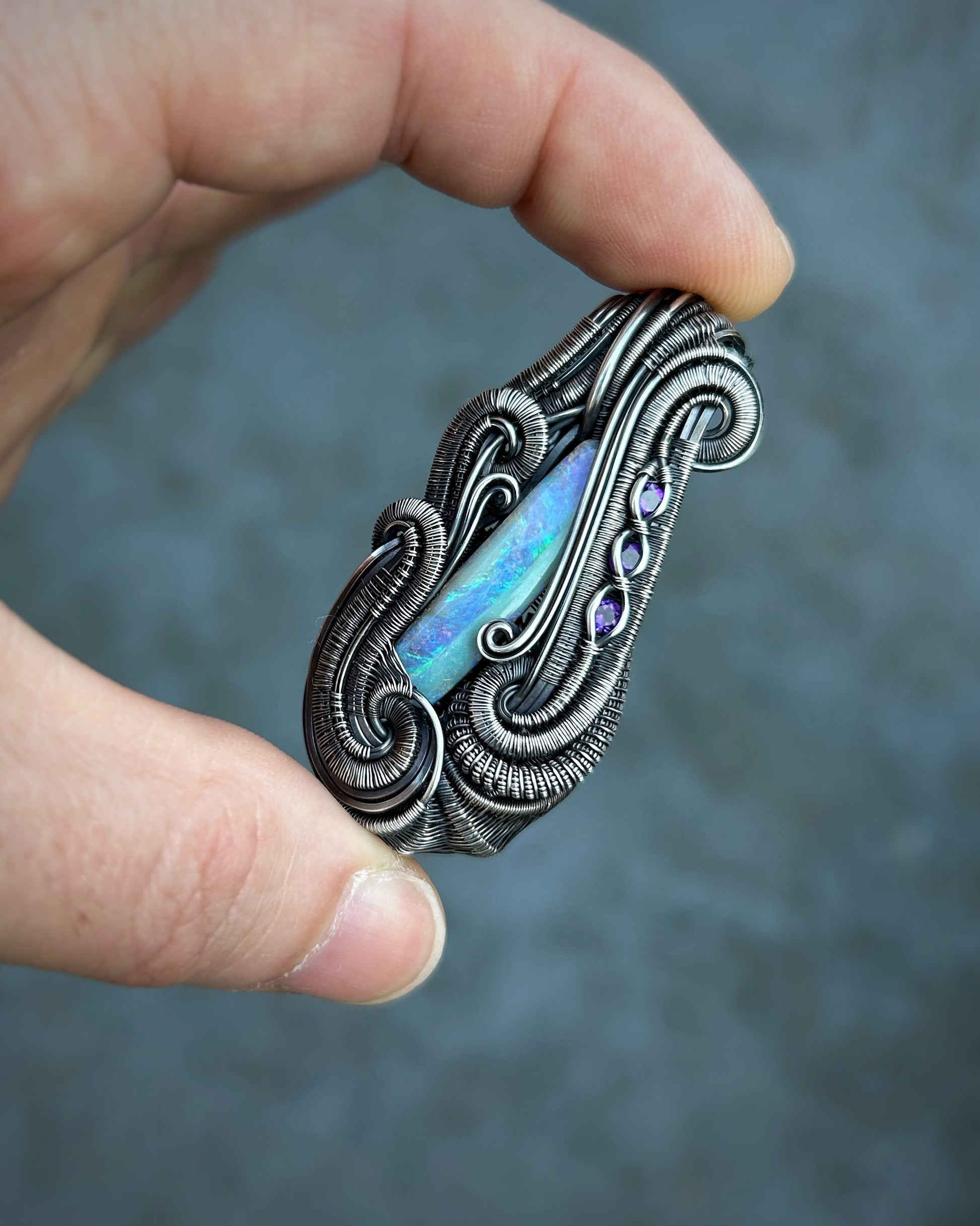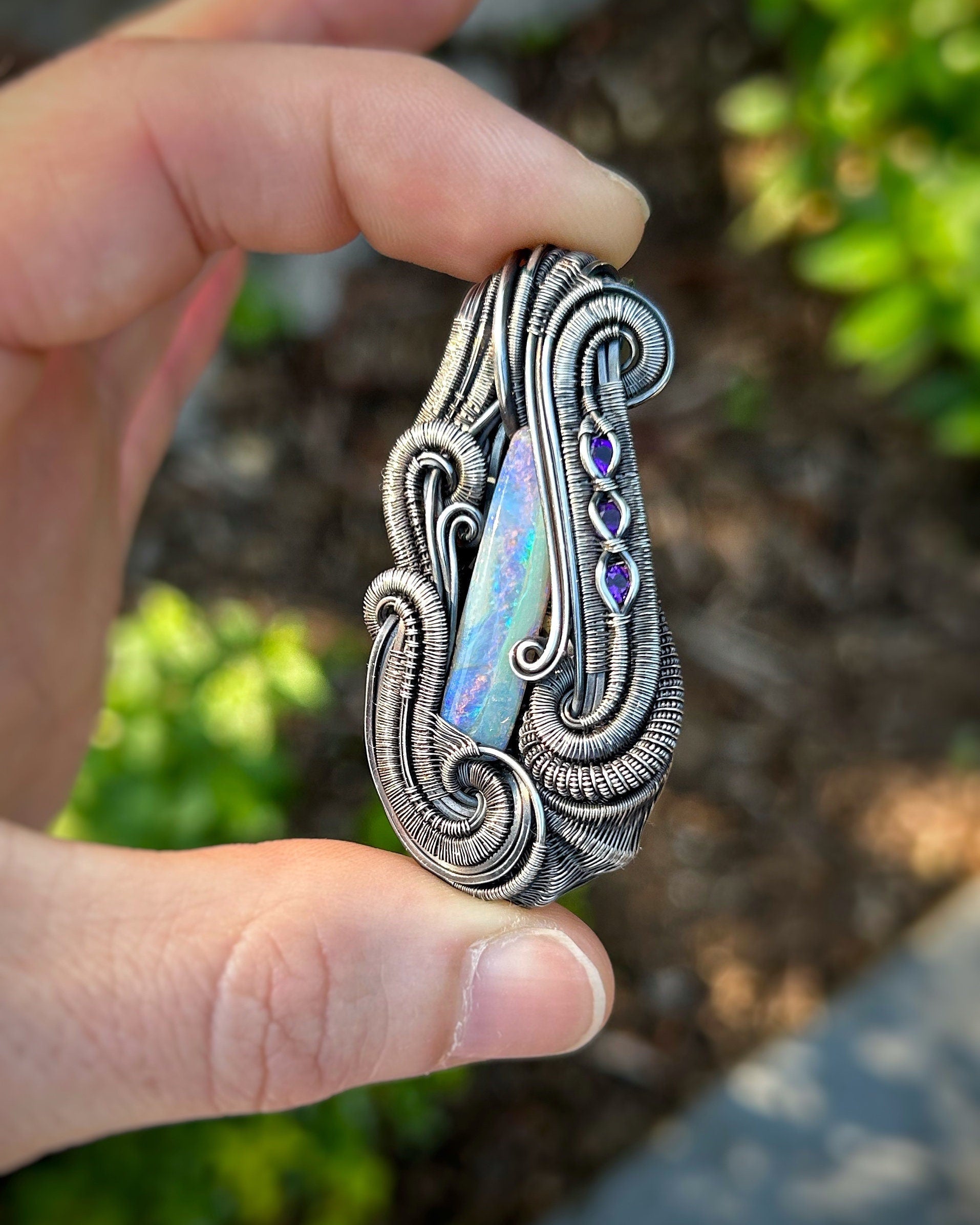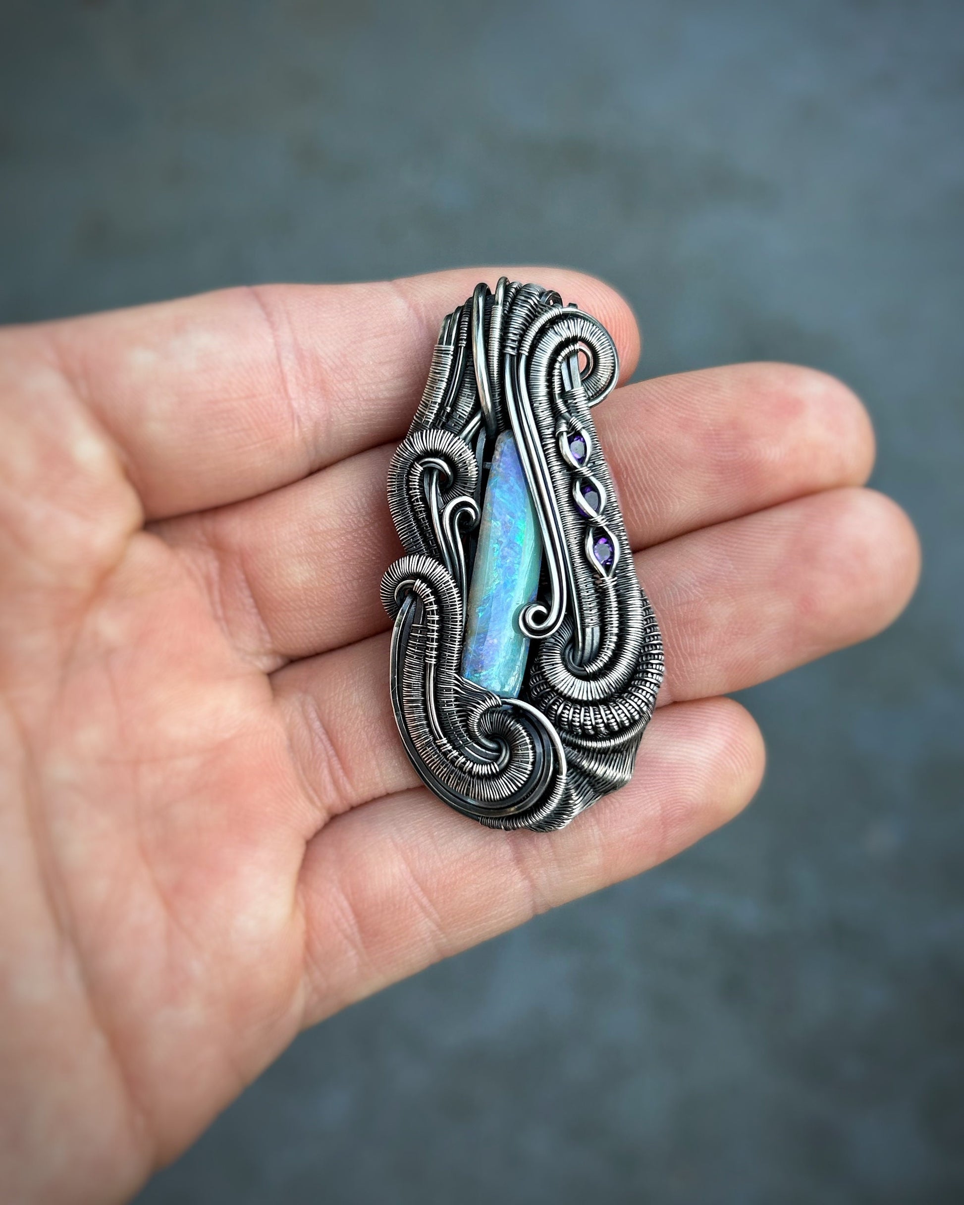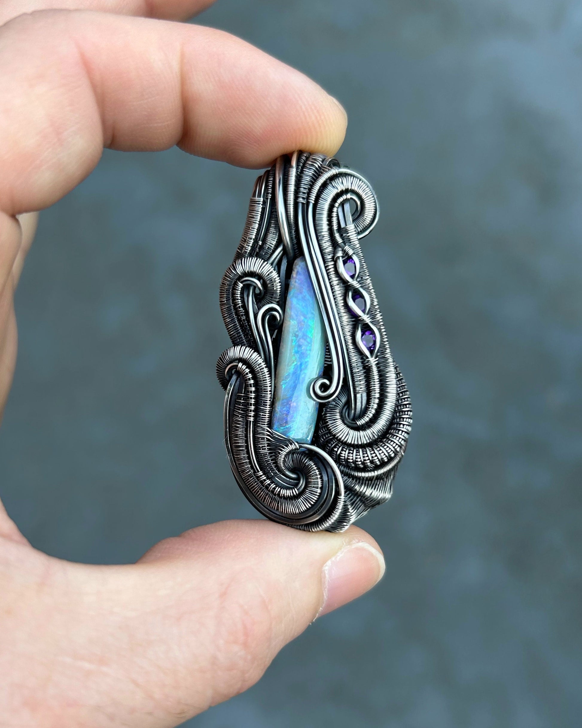 Australian Opal Pendant // Purple // Amethyst // Light Blue // Festival Jewelry // Oxidized Silver // Handmade Art // Wearable // Sexy
