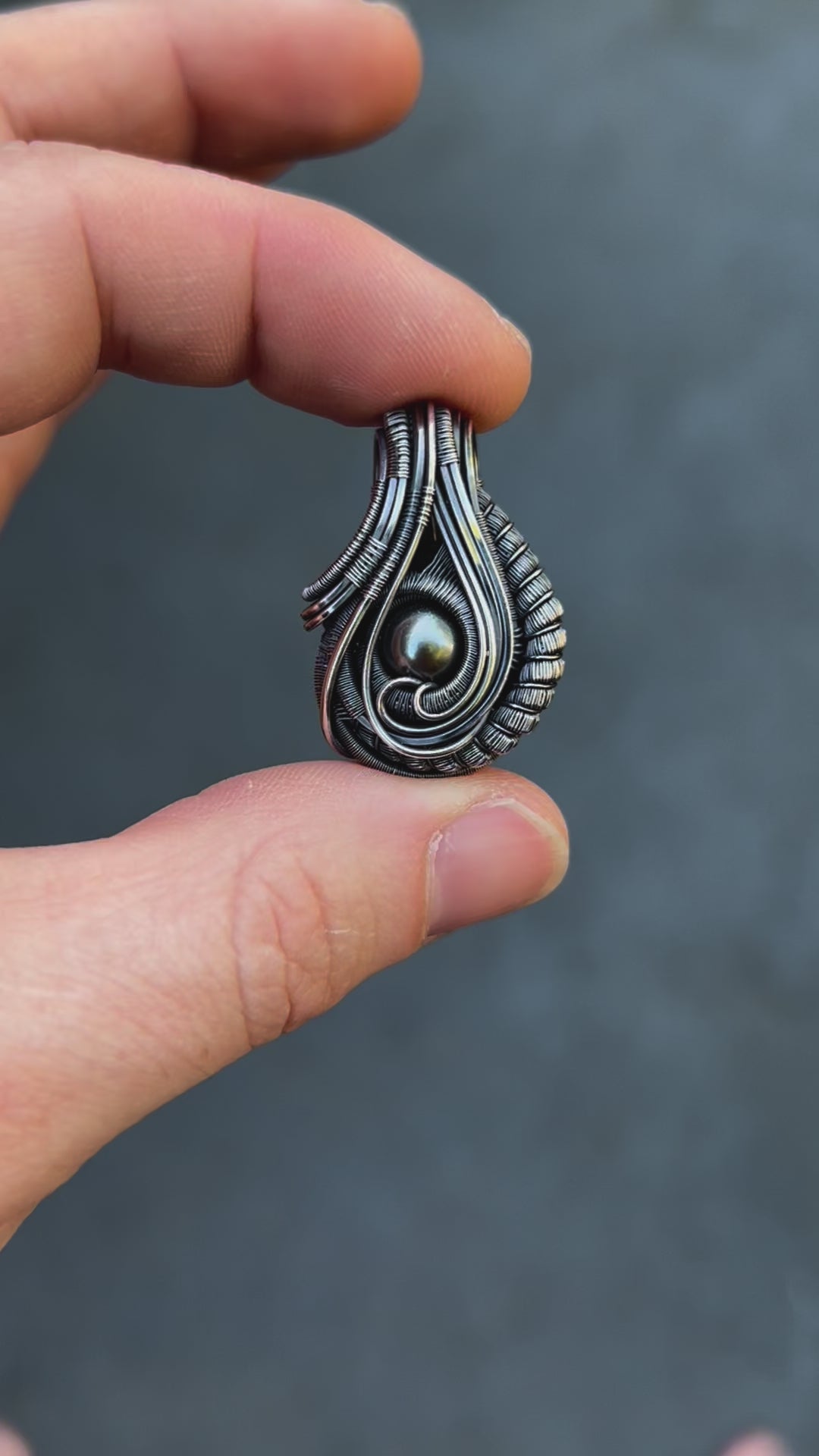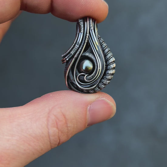Black Pearl Pendant // Oxidized Silver // Wire Wrap // Festival Jewelry // Pearl Necklace // Handmade // Wire Flow // Elegant // Art