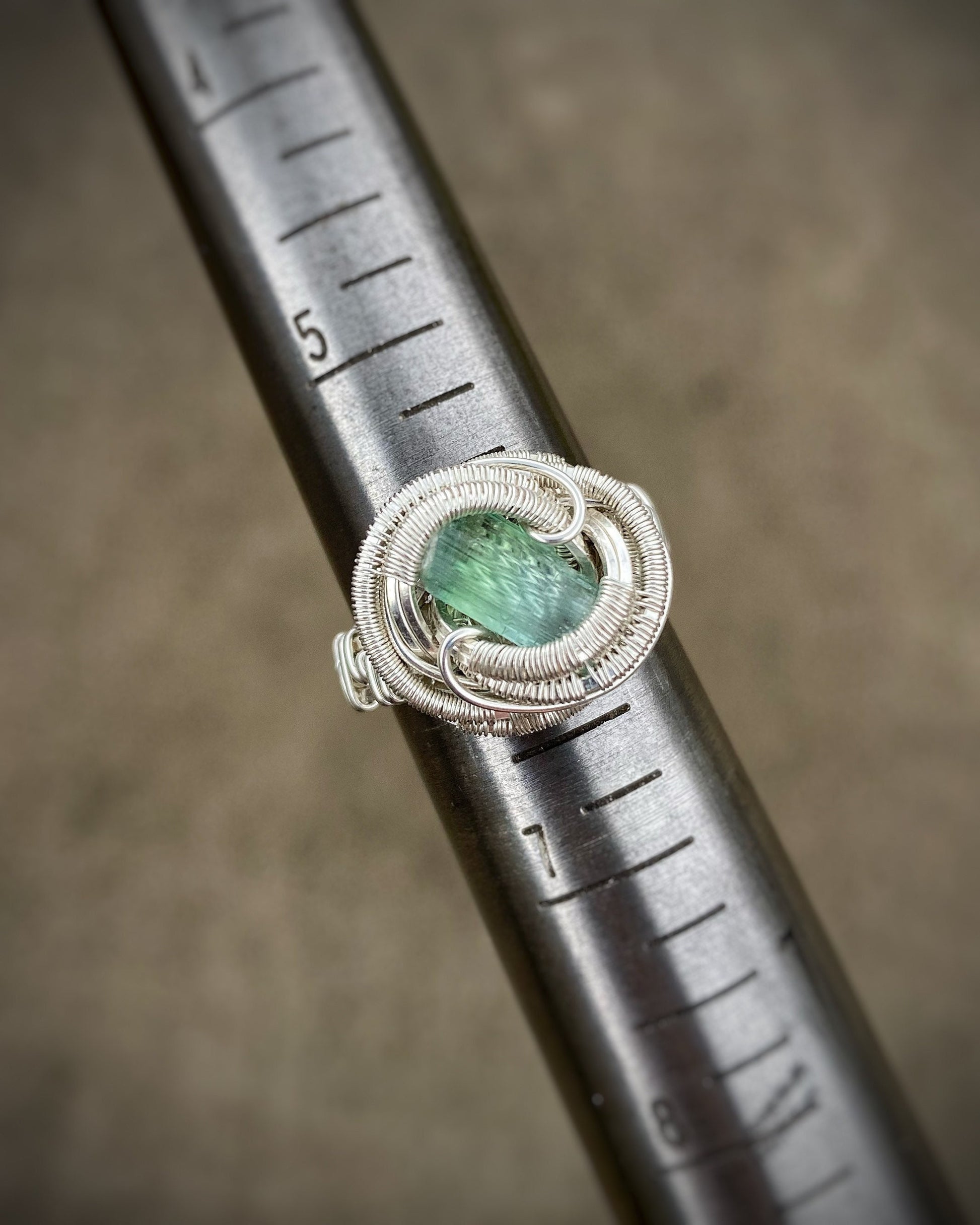 Blue Green Tourmaline // Wrapped Ring // Festival Jewelry // Sterling Silver // Wire Flow // Organic // Comfortable // Sexy Ring // Crystal