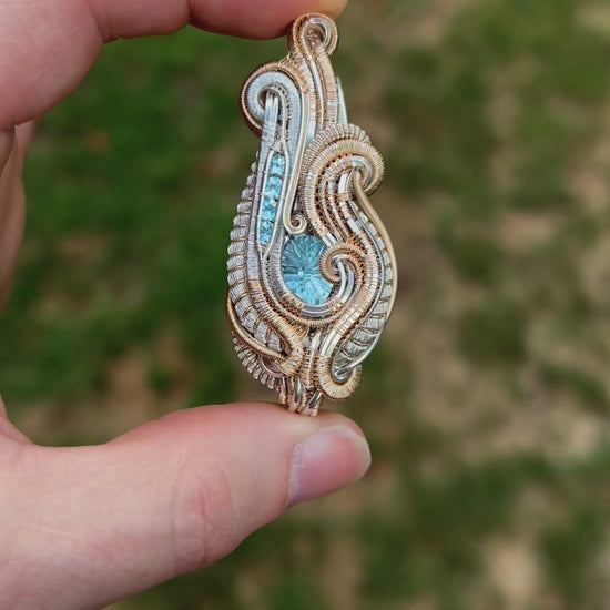 Blue Topaz // Sterling Silver // Gold fill // Two Tone // Festival Jewelry // Wire Wrapped Pendant // Handmade Necklace // One of a Kind