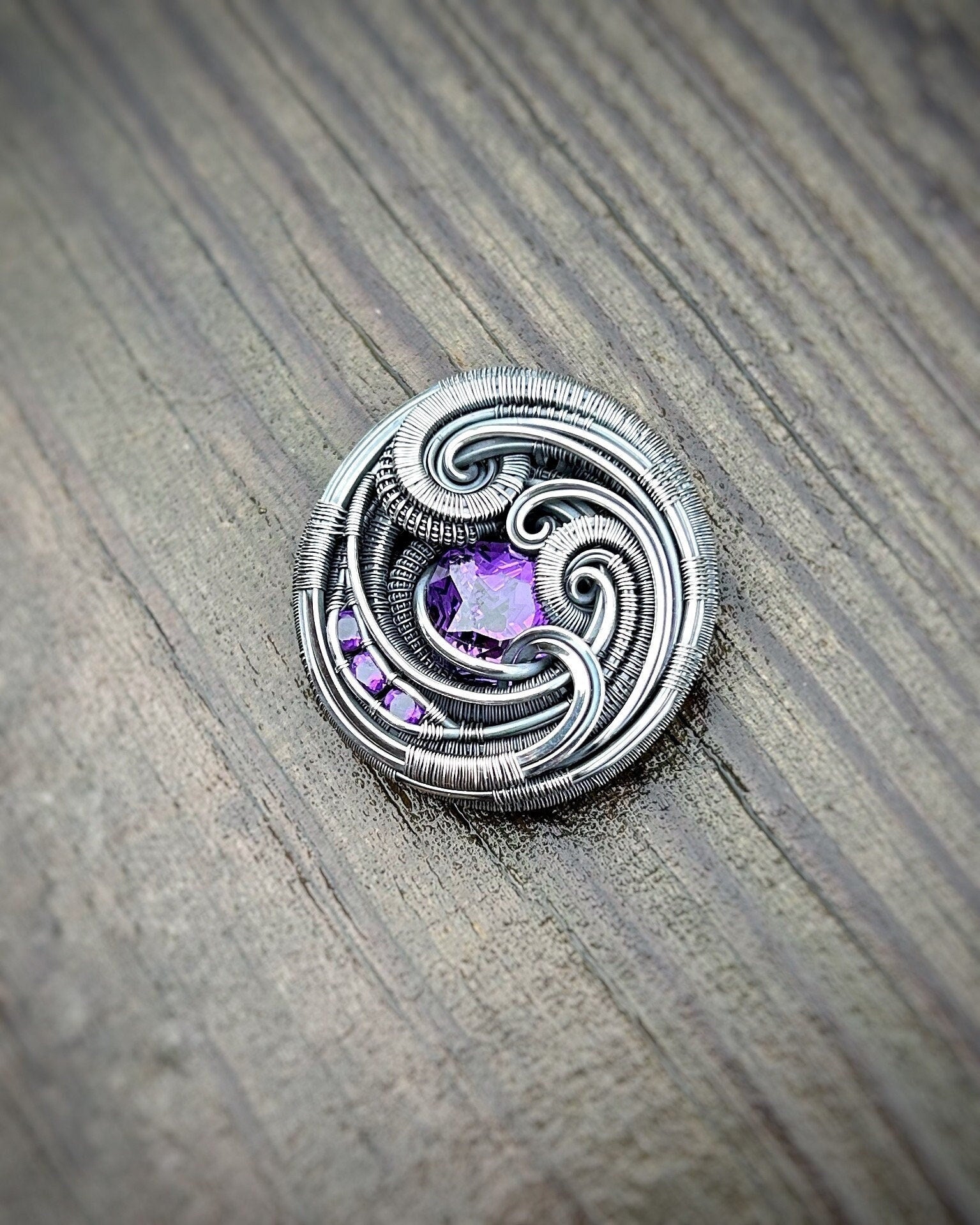 Circular mini pendant // wire wrap // Christmas gift // festival jewelry // handmade // amethyst // purple // Wire Flow // Organic