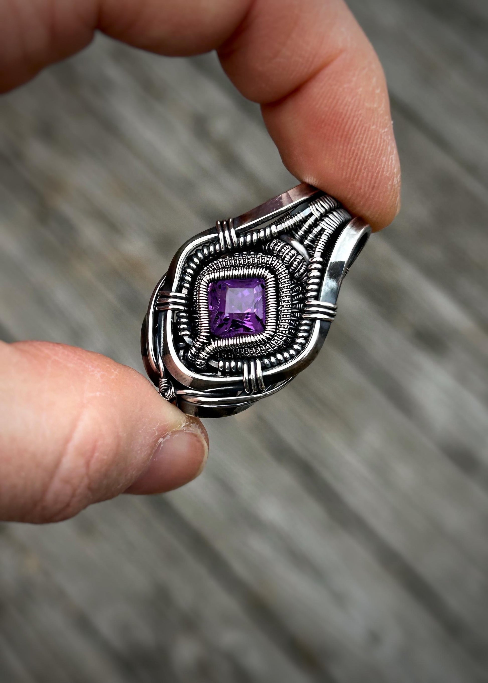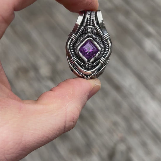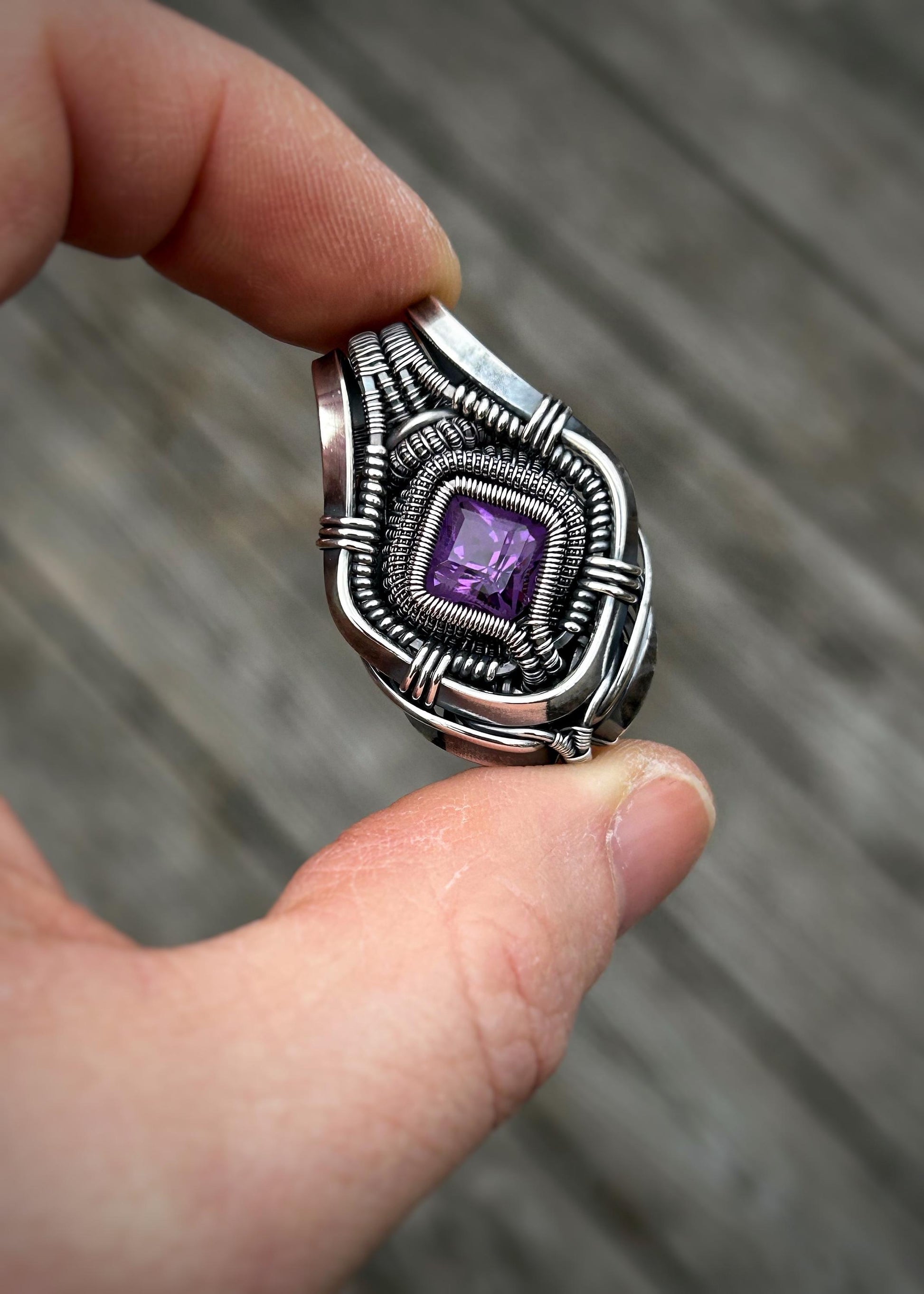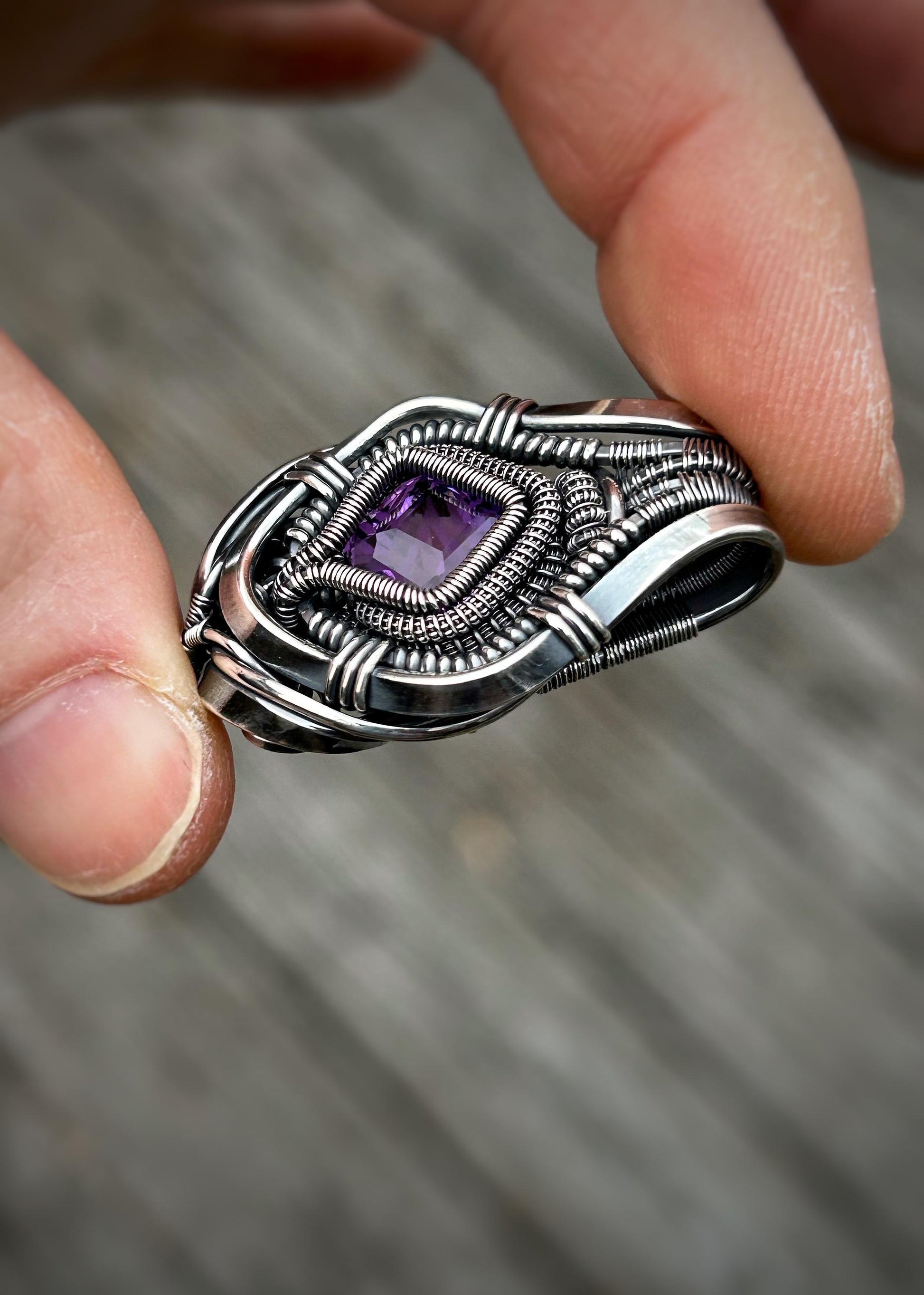 Compact Symmetrical Pendant // Amethyst // Purple // Festival Jewelry // Oxidized Silver // Handmade Wire Art // Wire Wrap // One of a Kind