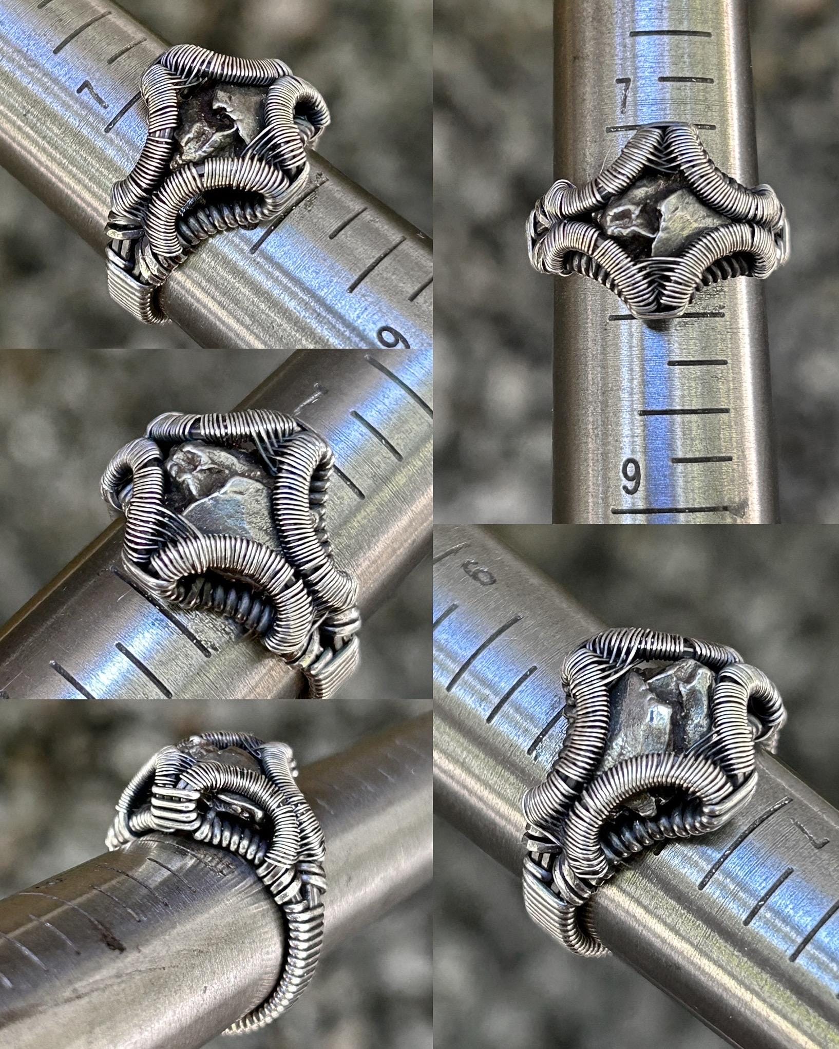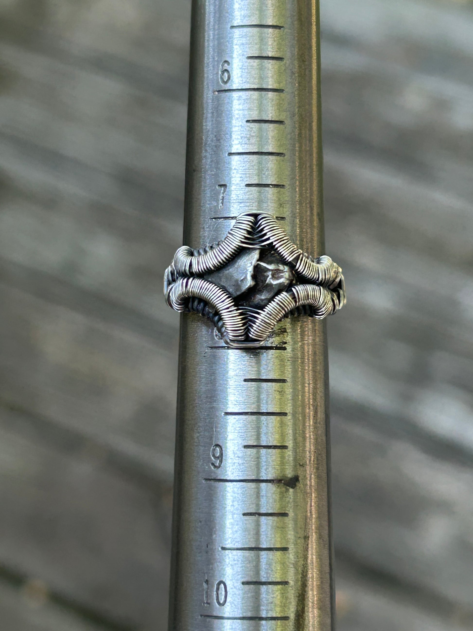 Meteorite Ring // Size 7.5 // Oxidized/Polished Sterling Silver // Wire Wrap // One of a Kind // Comfortable // Handmade