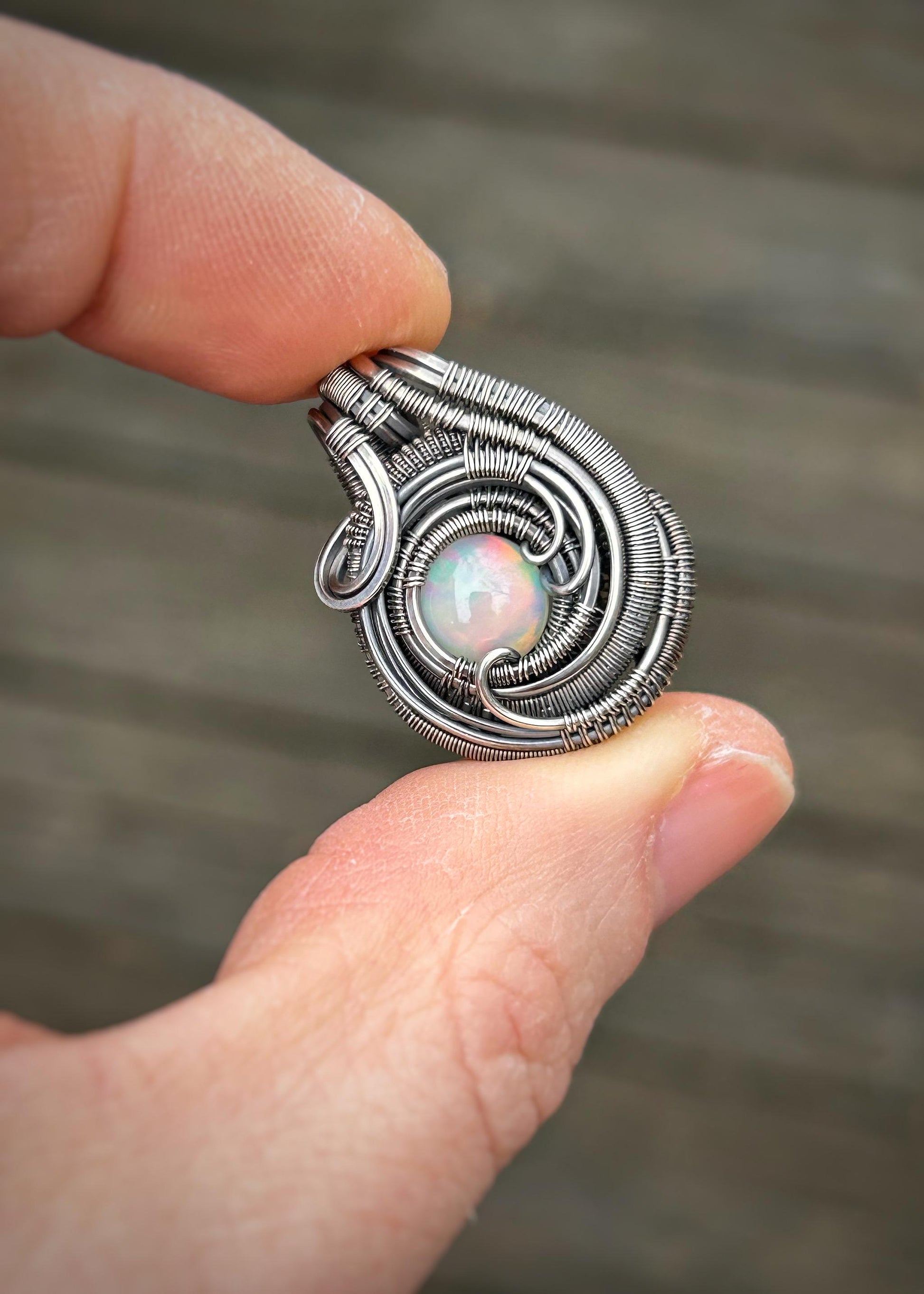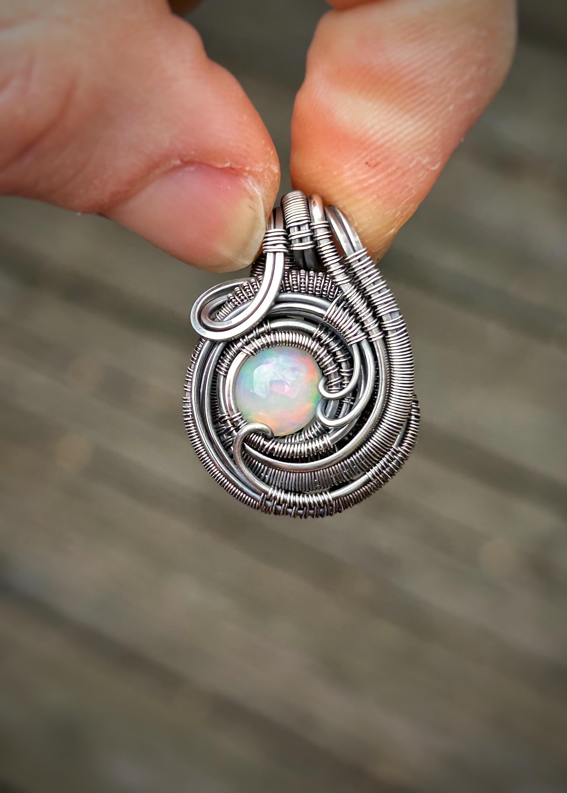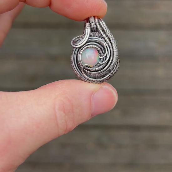 Mini Opal Pendant // Ethiopian Opal // Oxidized/Polished Sterling Silver // Circular Jewelry // Festival Art // Handmade // One of a Kind