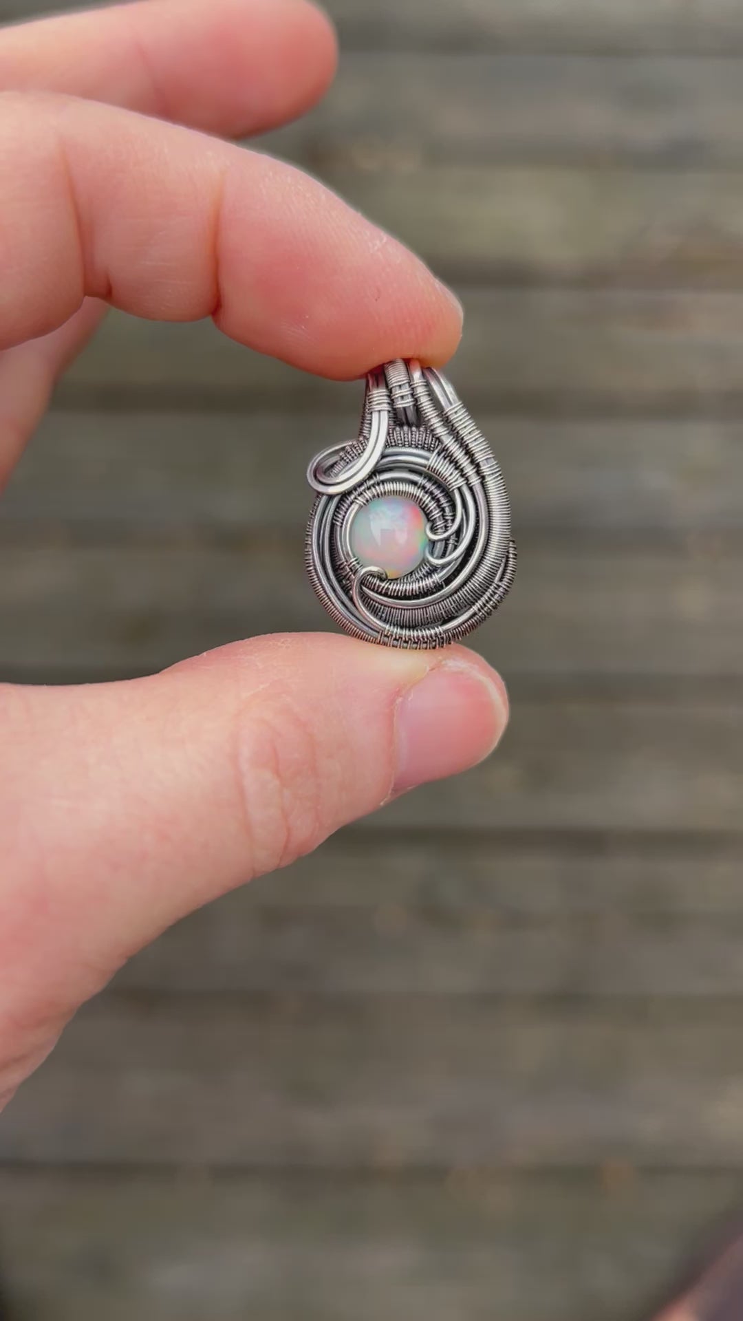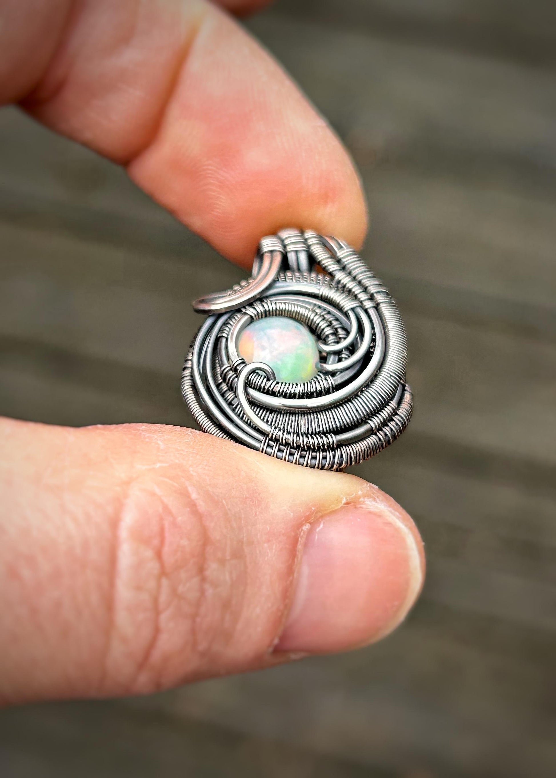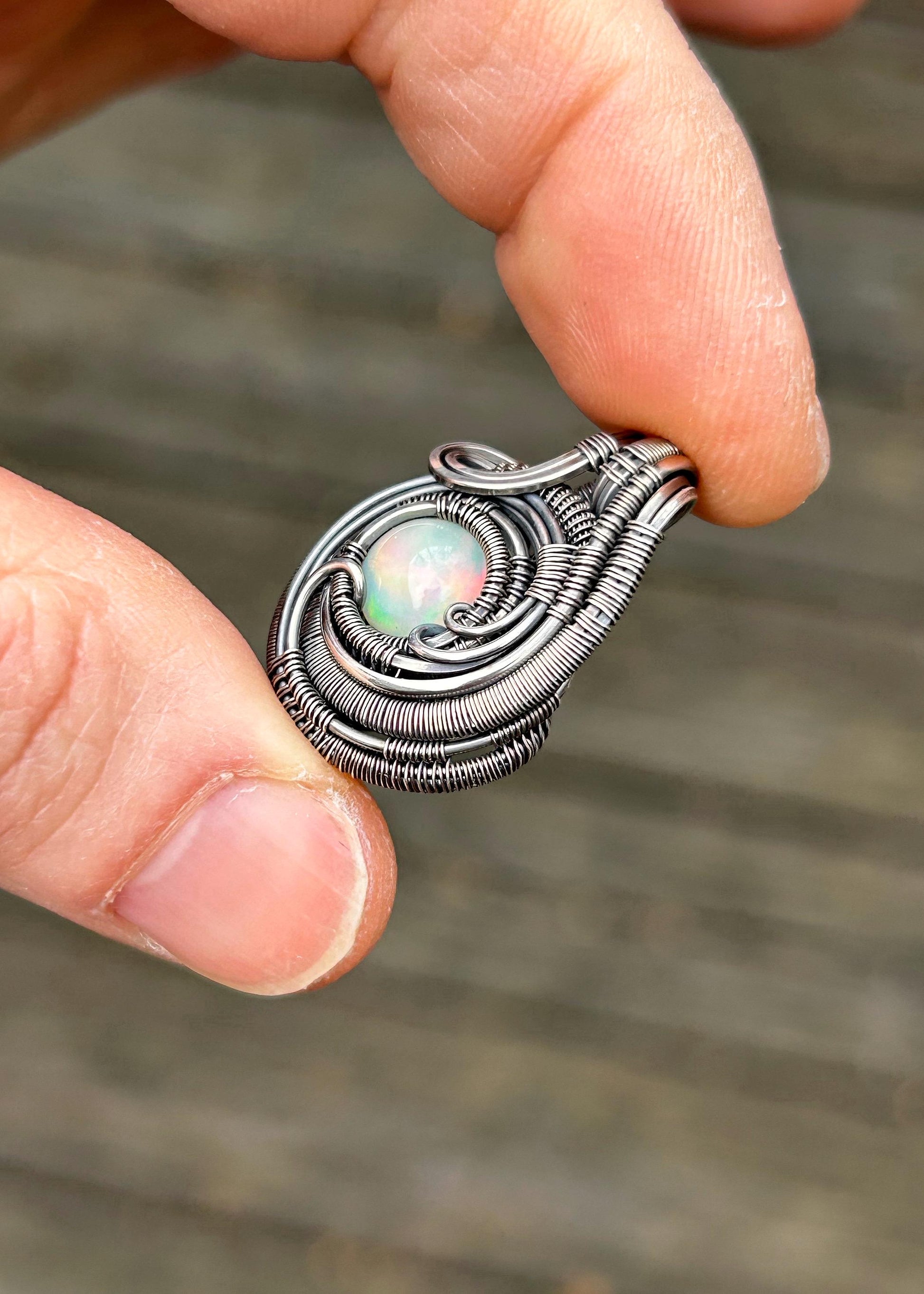Mini Opal Pendant // Ethiopian Opal // Oxidized/Polished Sterling Silver // Circular Jewelry // Festival Art // Handmade // One of a Kind