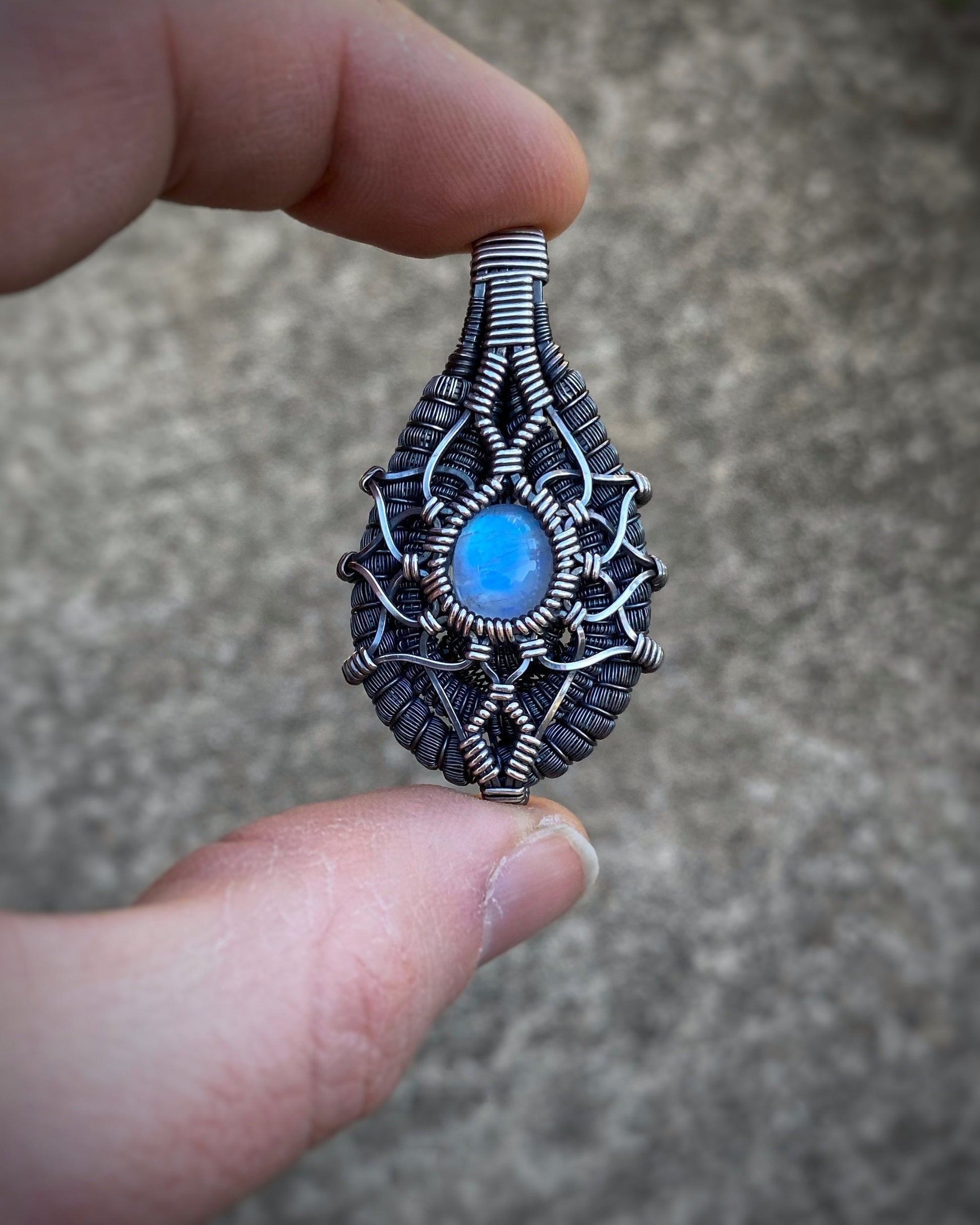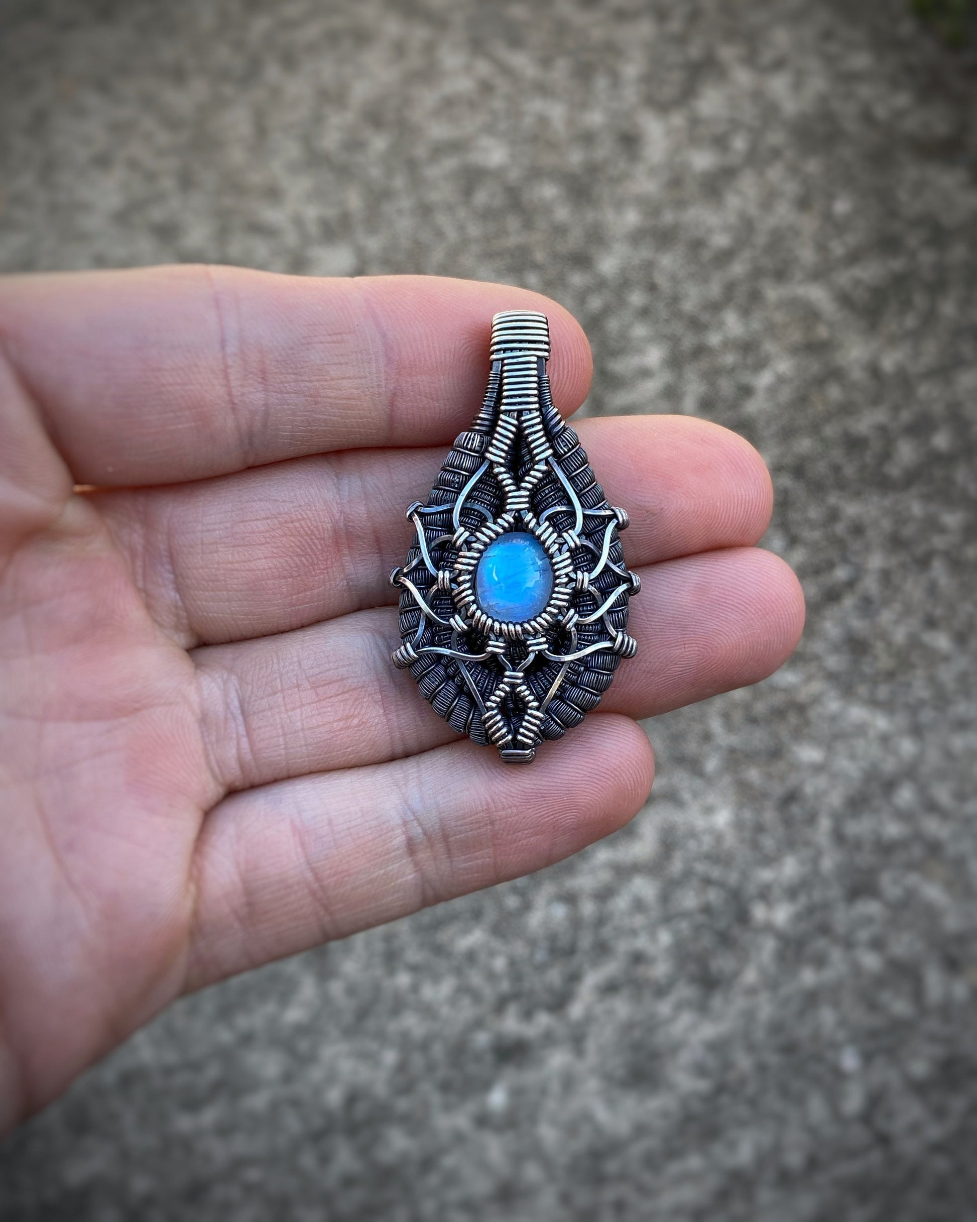 Moonstone Mandala // Moondala // Flower of Life // Sacred Geometry // Symmetrical Pendant // Festival Jewelry // Handmade Wire Wrap Silver
