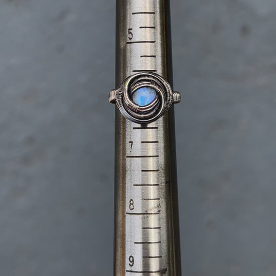Moonstone Ring // Size 6 // Sterling Silver // Handmade Wire Wrap // Wrapped Ring // Festival Jewelry // Wire Flow // Art