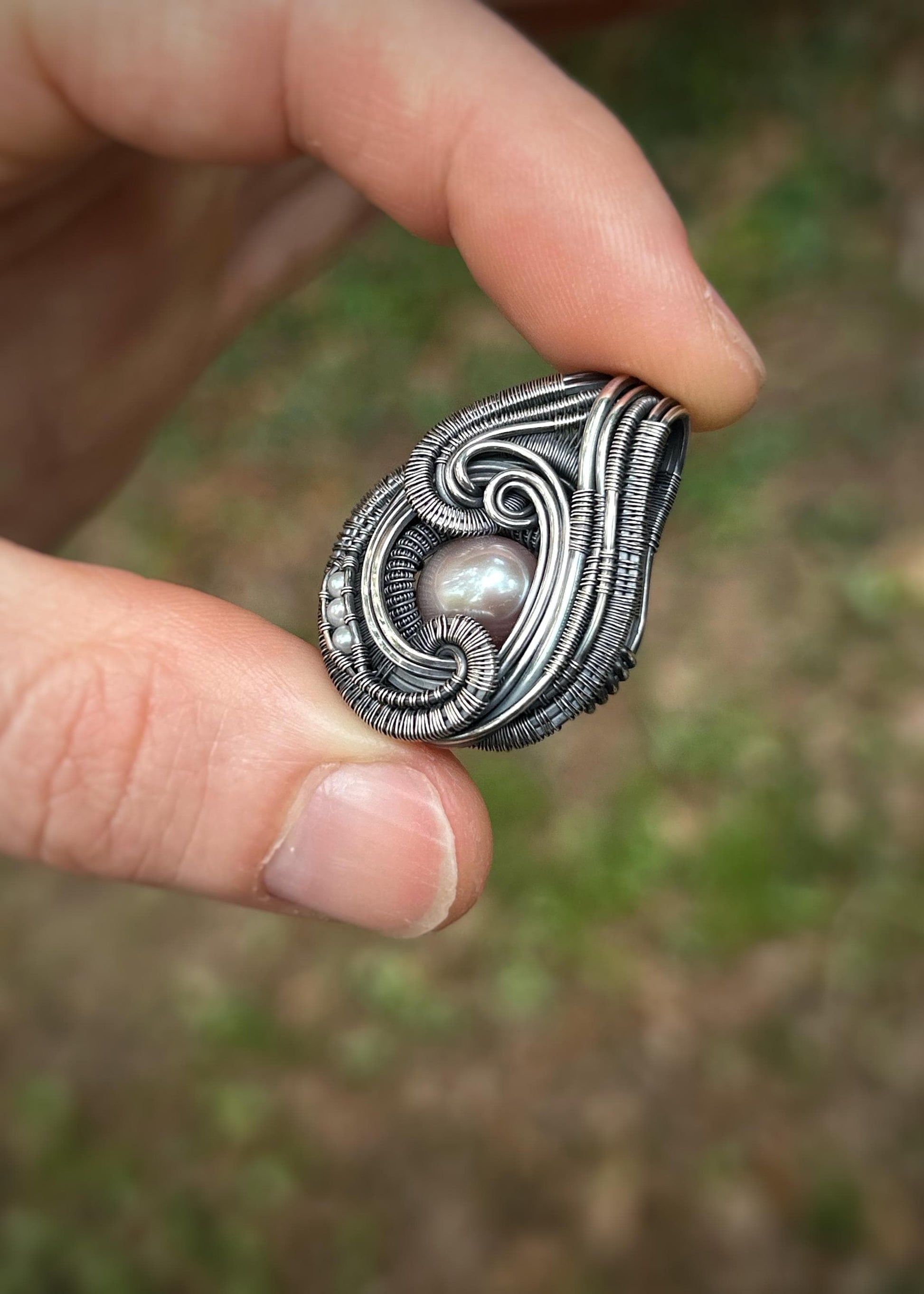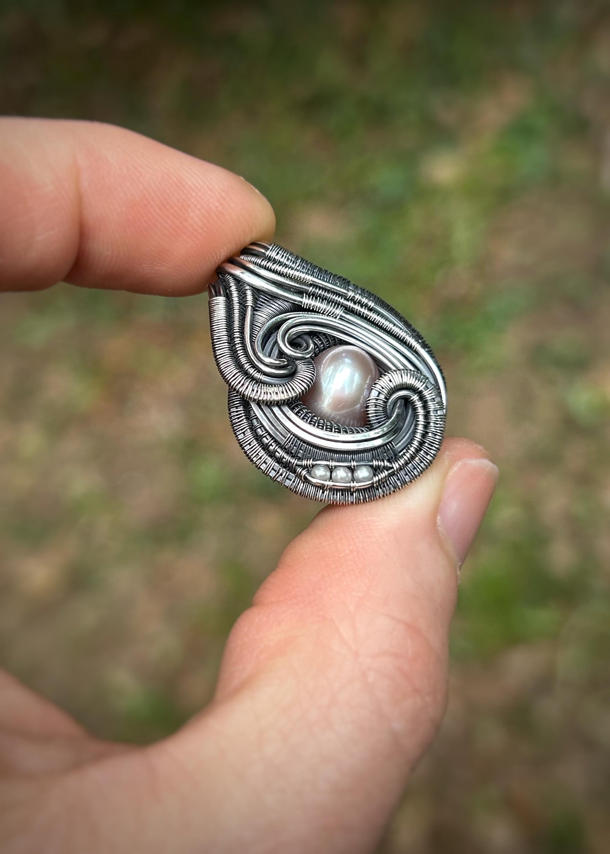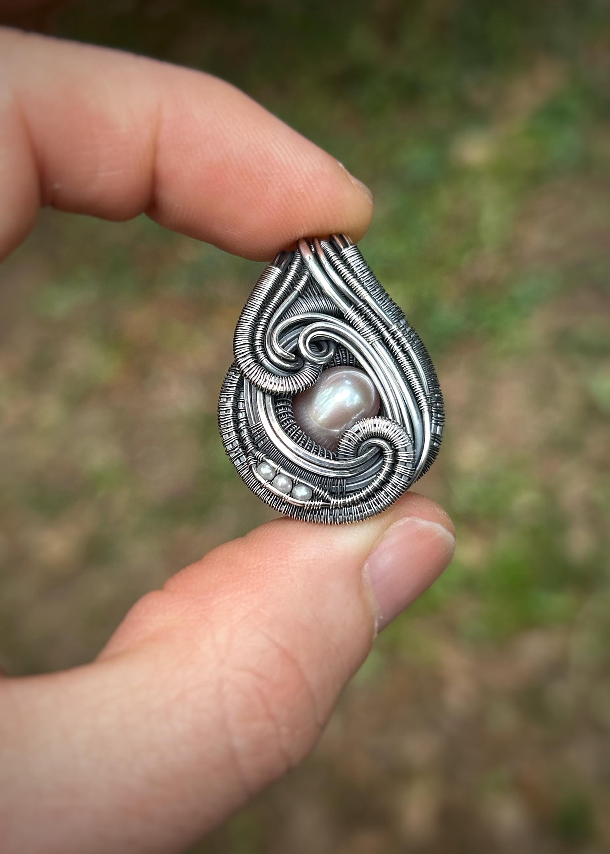 Pearl Pendant // Pearl Necklace // Freshwater Pearls // Wire Wrapped Pendant // Handmade // Festival Jewelry // Oxidized Sterling Silver