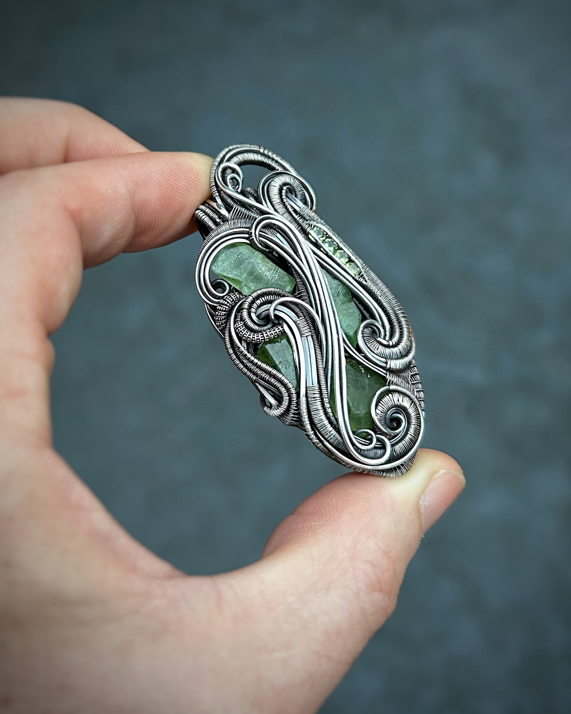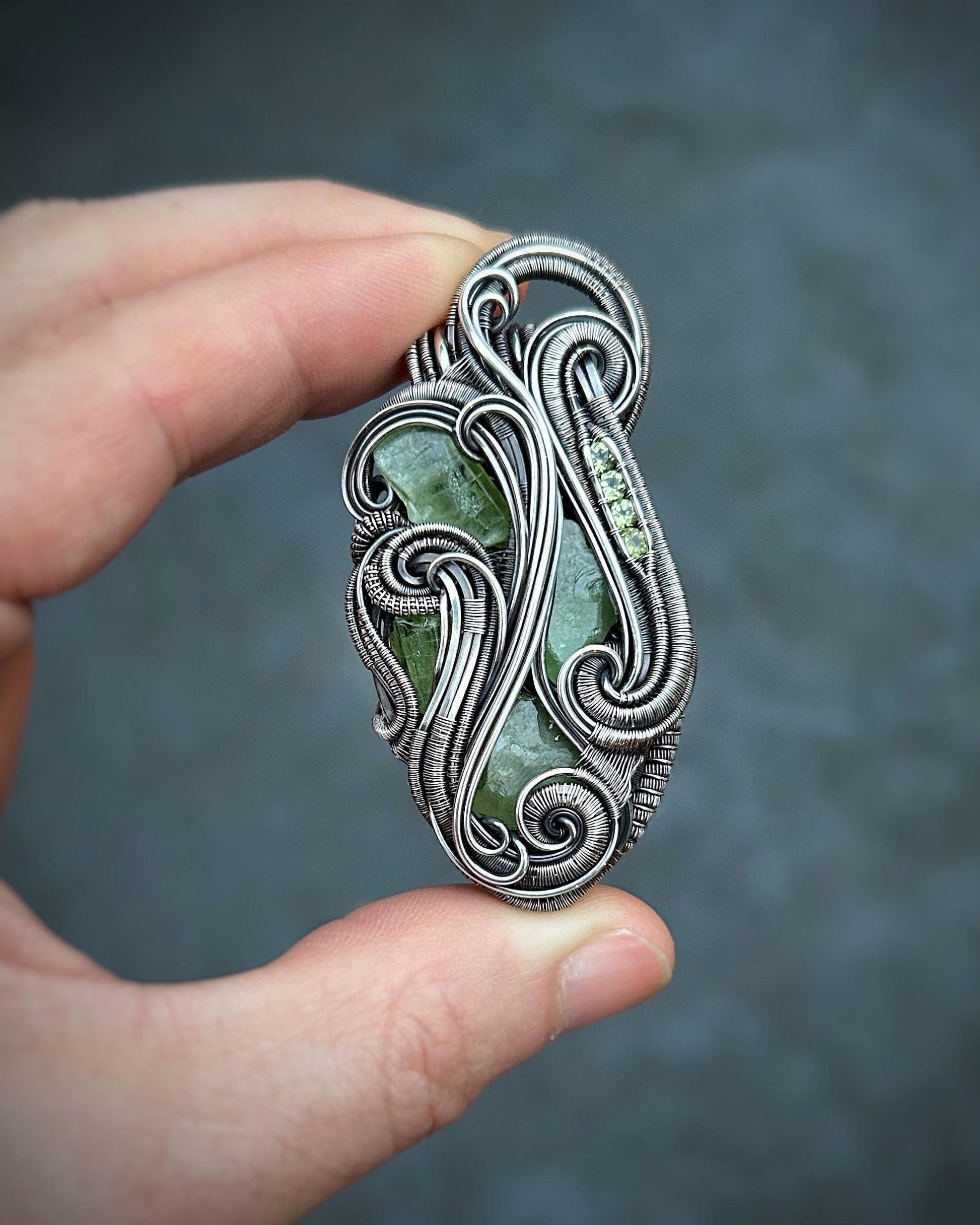 Peridot Pendant // August Birthstone // Green // Festival Jewelry // Wire Wrap // Handmade // Oxidized Silver // Sexy Wire Flow // Elegant
