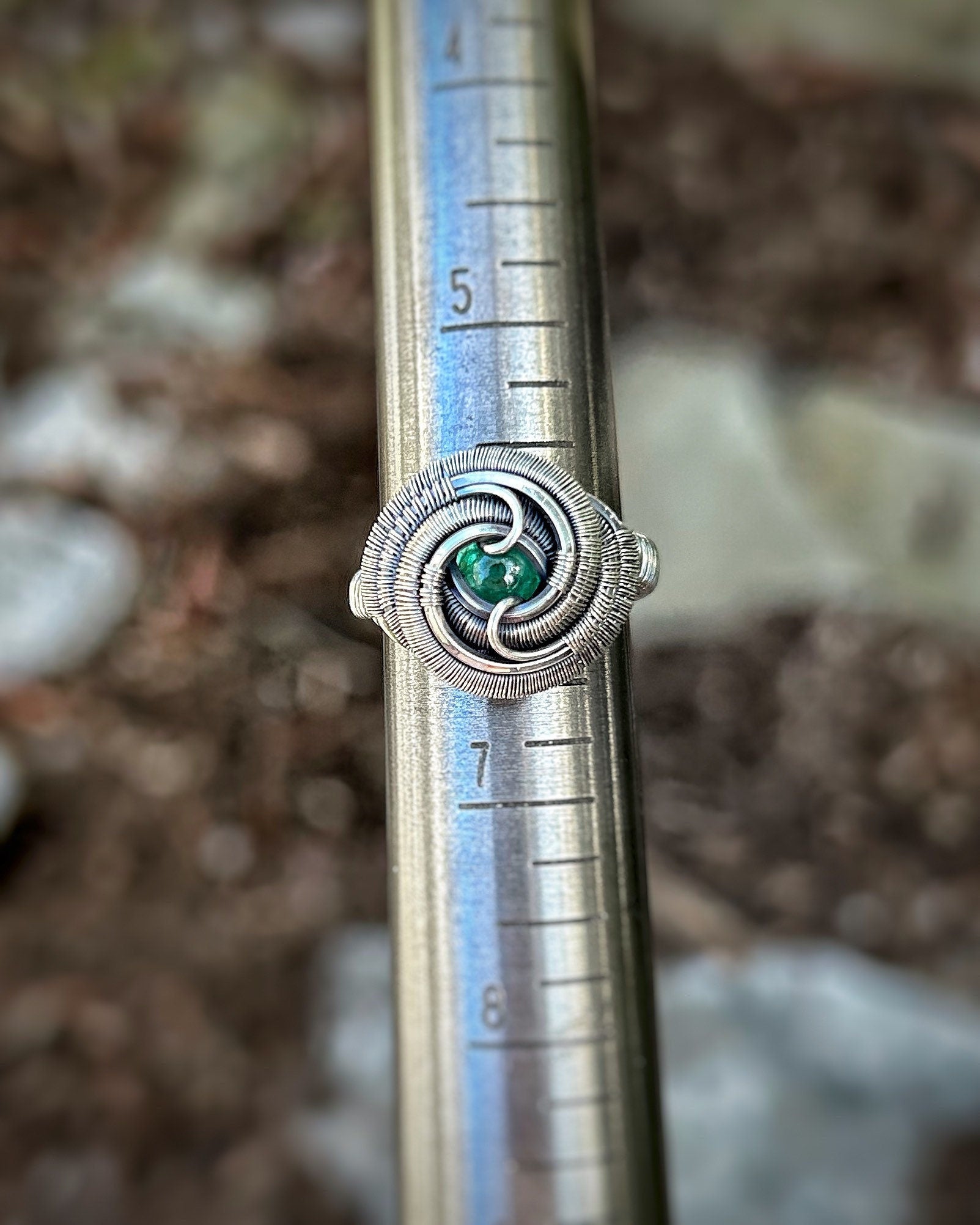 Size 6 // Emerald Ring // Oxidized Silver // Elegant // Symmetrical // Comfortable // Festival Jewelry // Handmade Wire Art