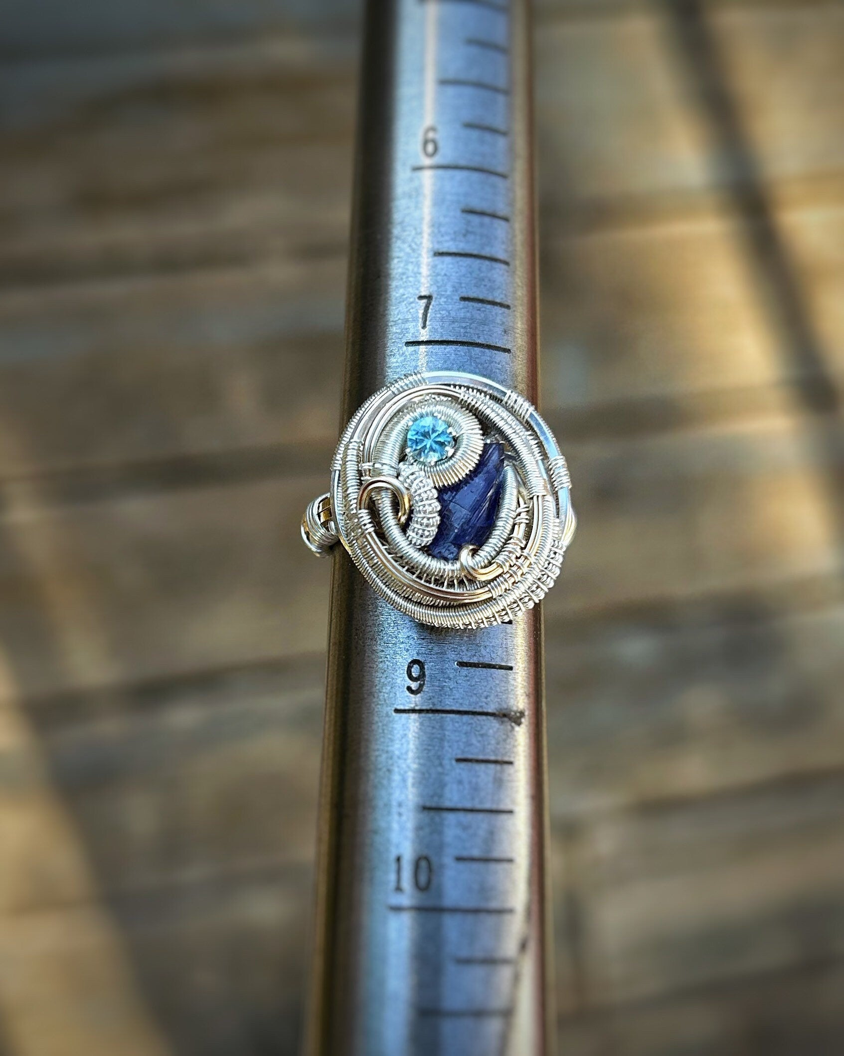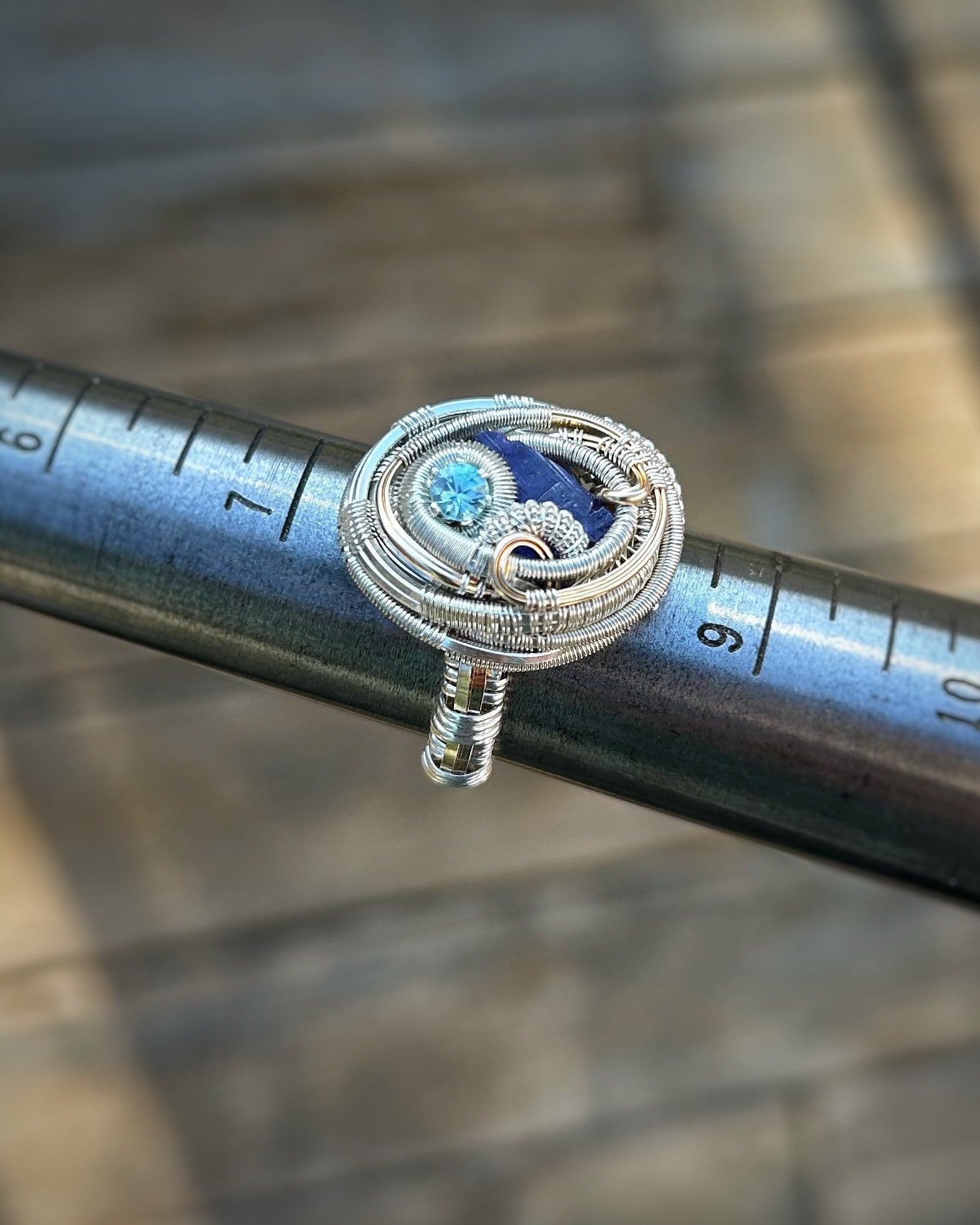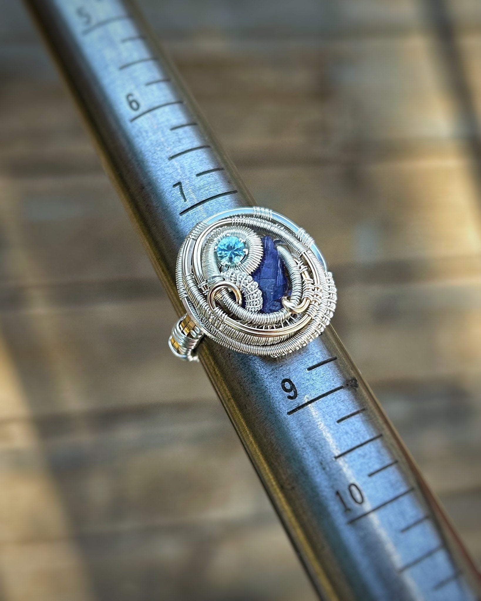 Size 8 Ring // Tanzanite // Blue Zircon // Festival Jewelry // Mixed Metals // Wire Wrapped Ring // Handmade Wire Art // Wire Flow