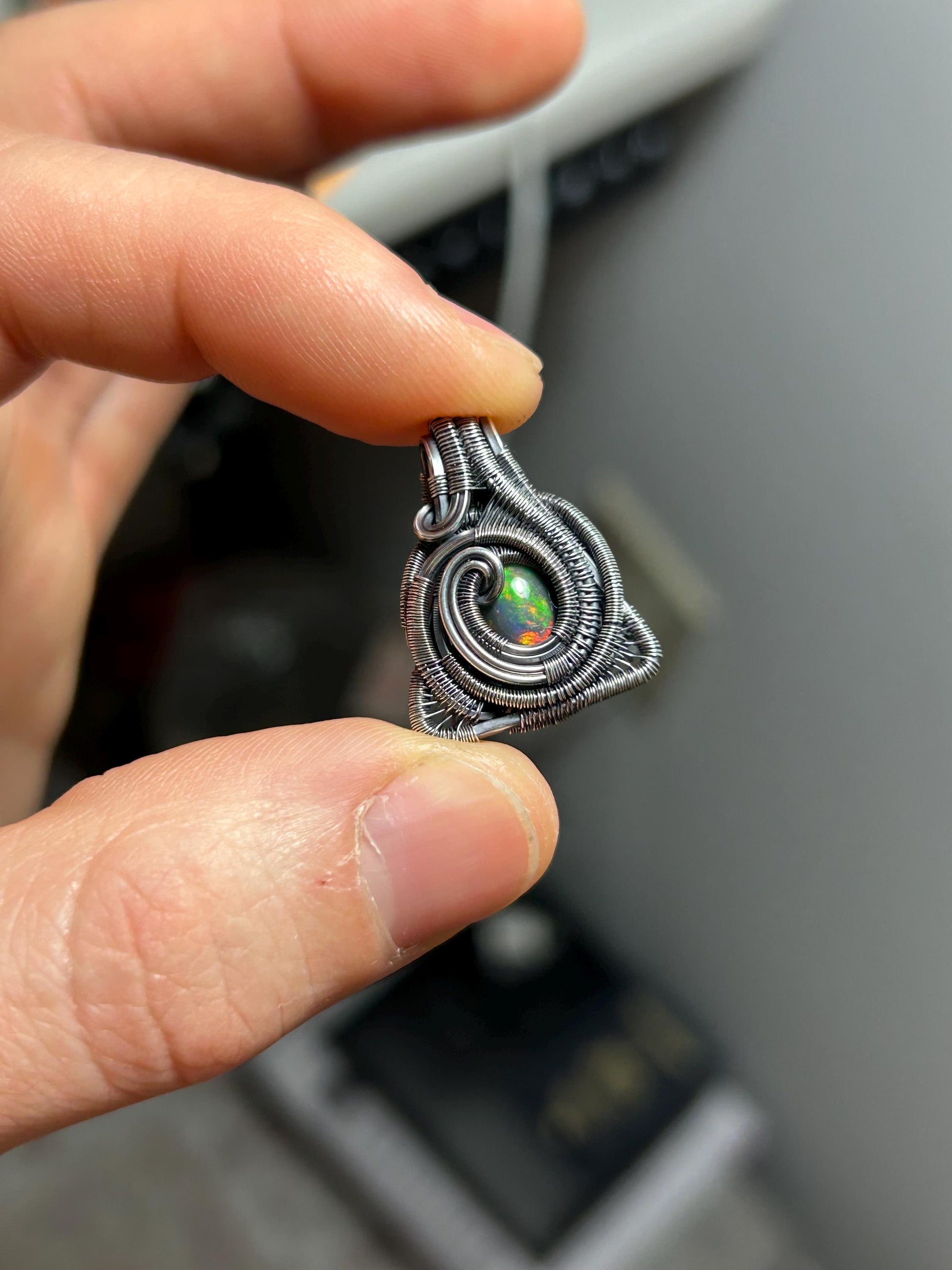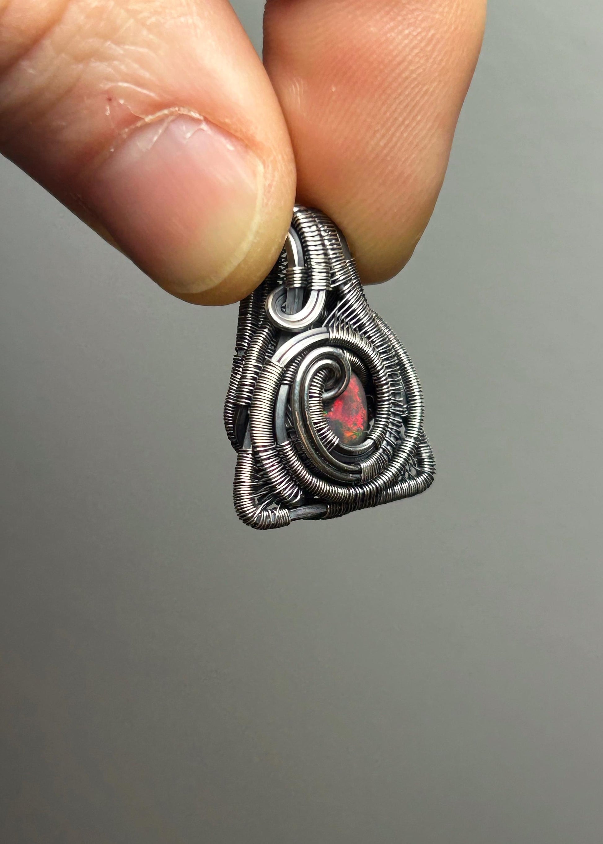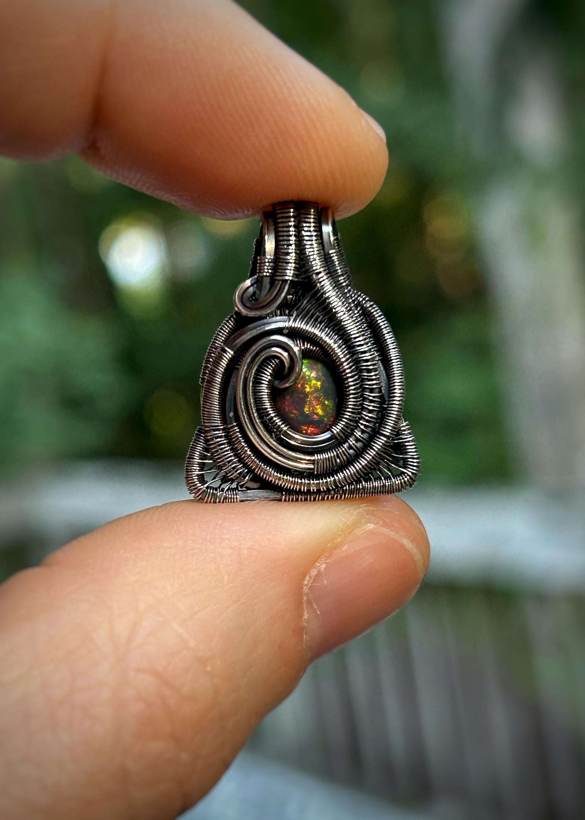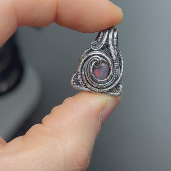 Triangular Opal Mini // Wire Wrapped Pendant // Ethiopian Welo Opal // Festival Jewelry // Oxidized Sterling Silver // Petite // Handmade