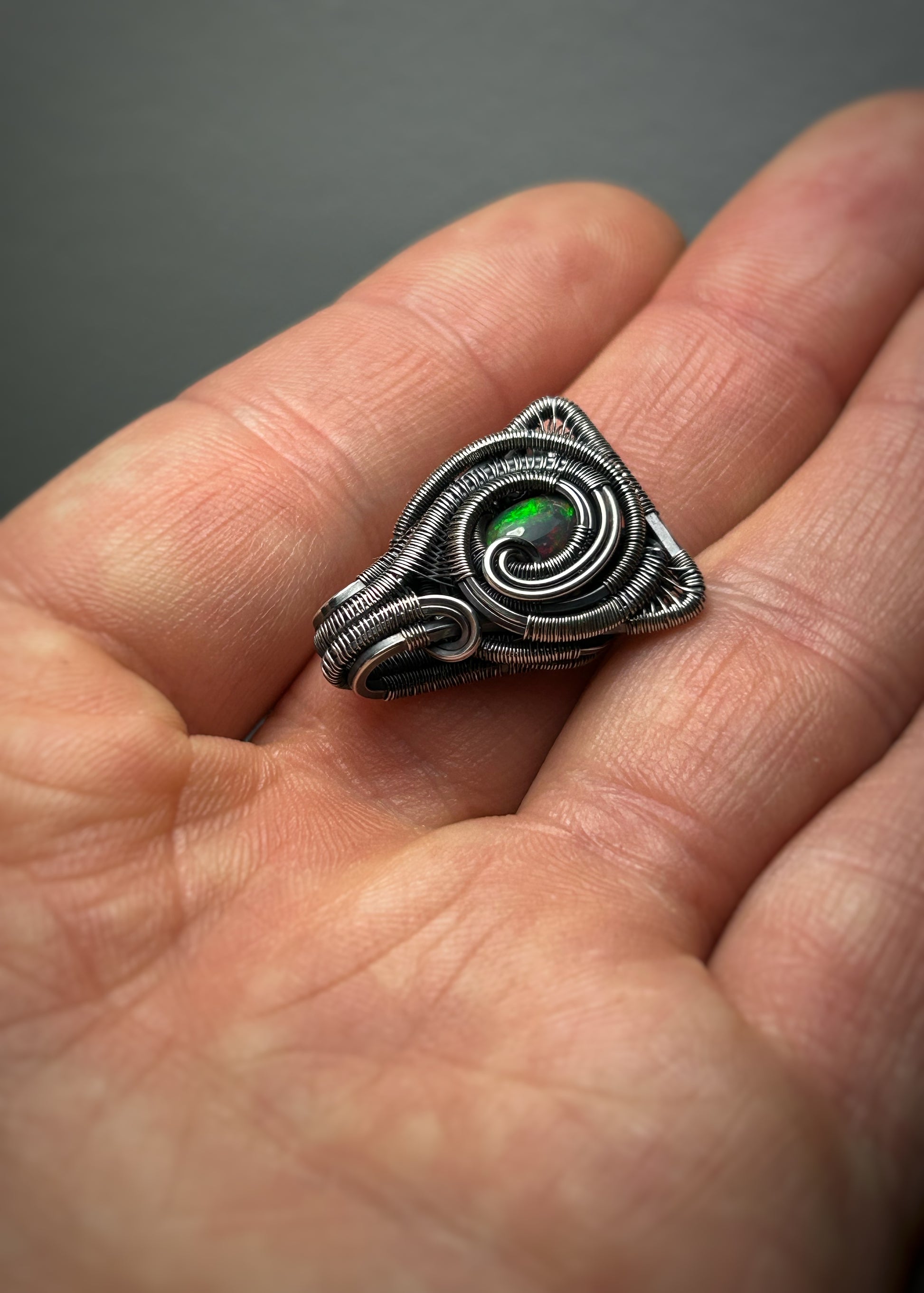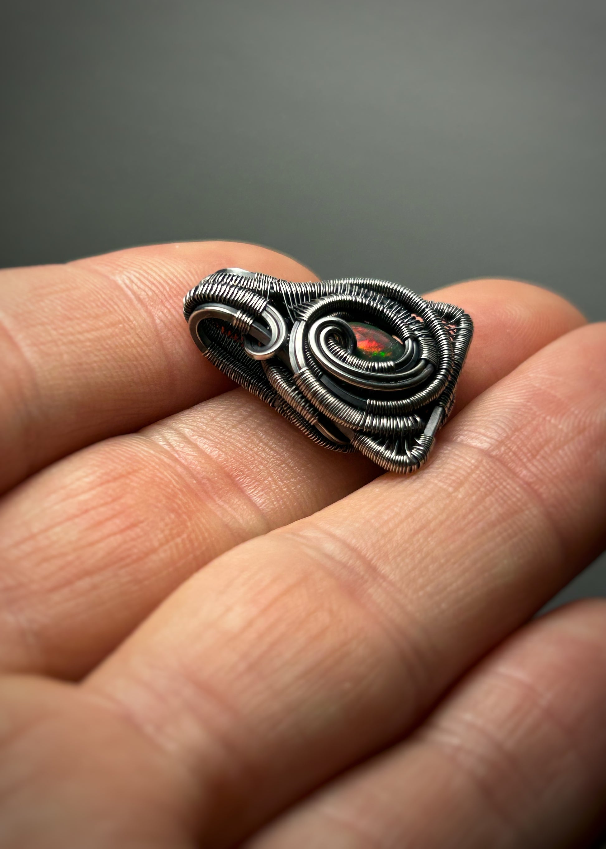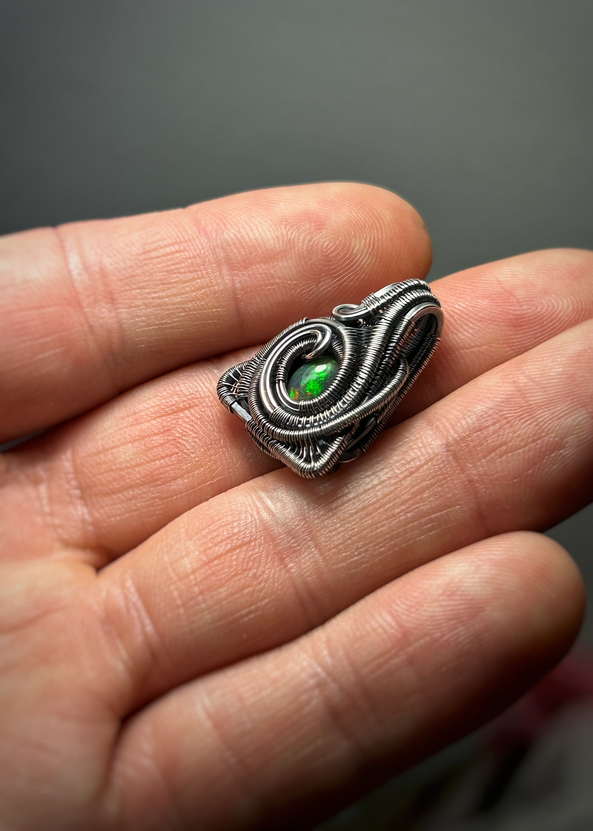 Triangular Opal Mini // Wire Wrapped Pendant // Ethiopian Welo Opal // Festival Jewelry // Oxidized Sterling Silver // Petite // Handmade