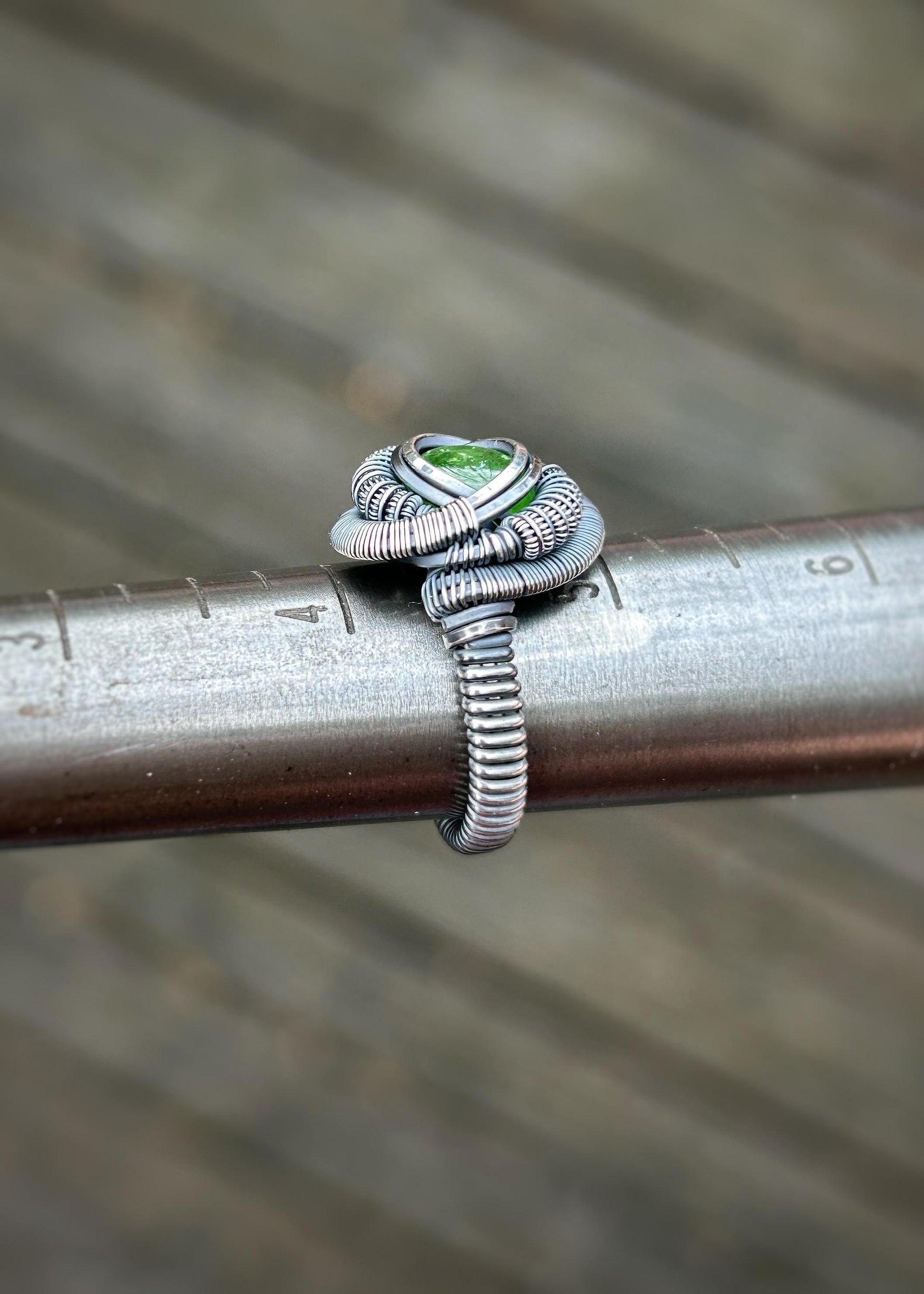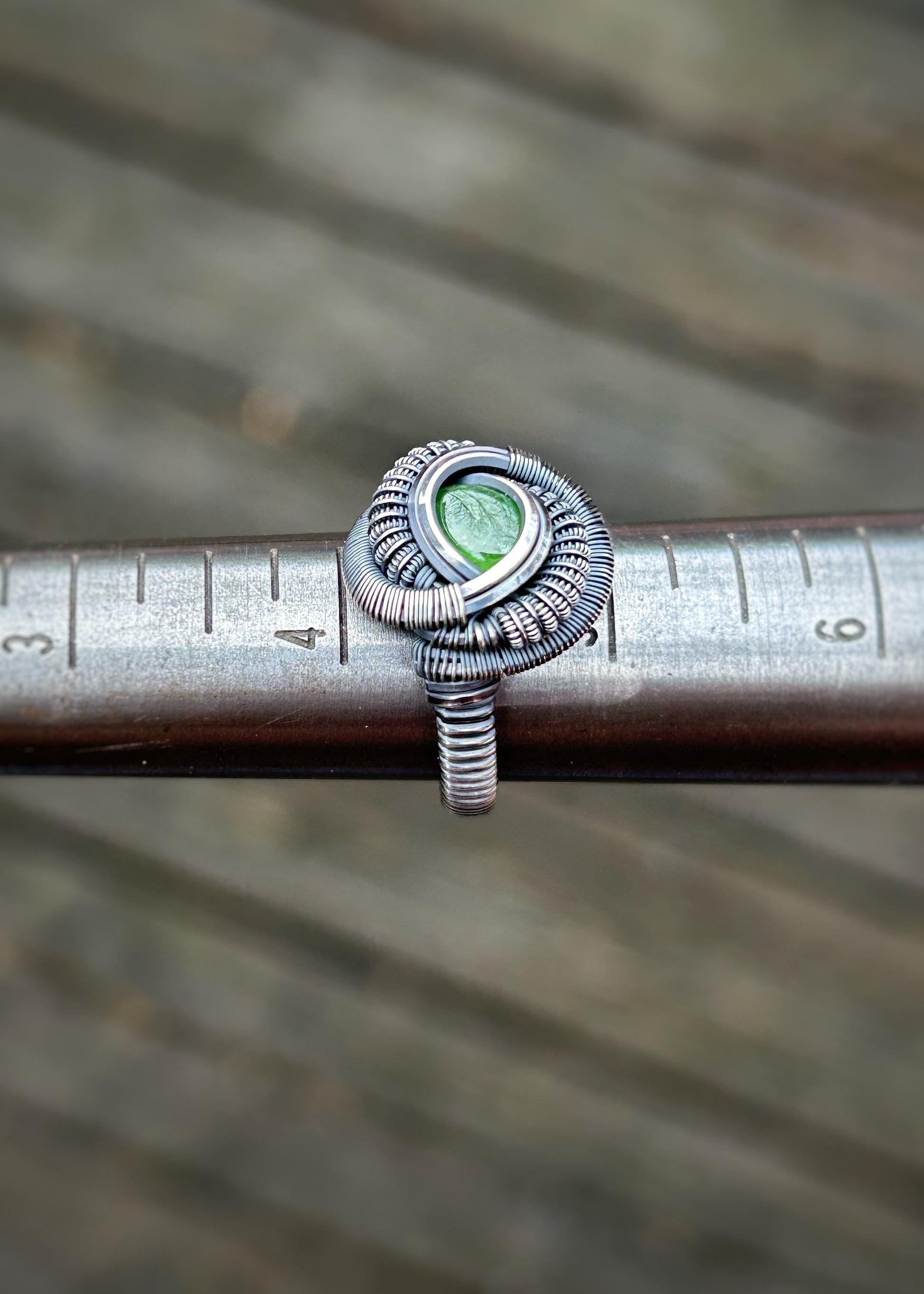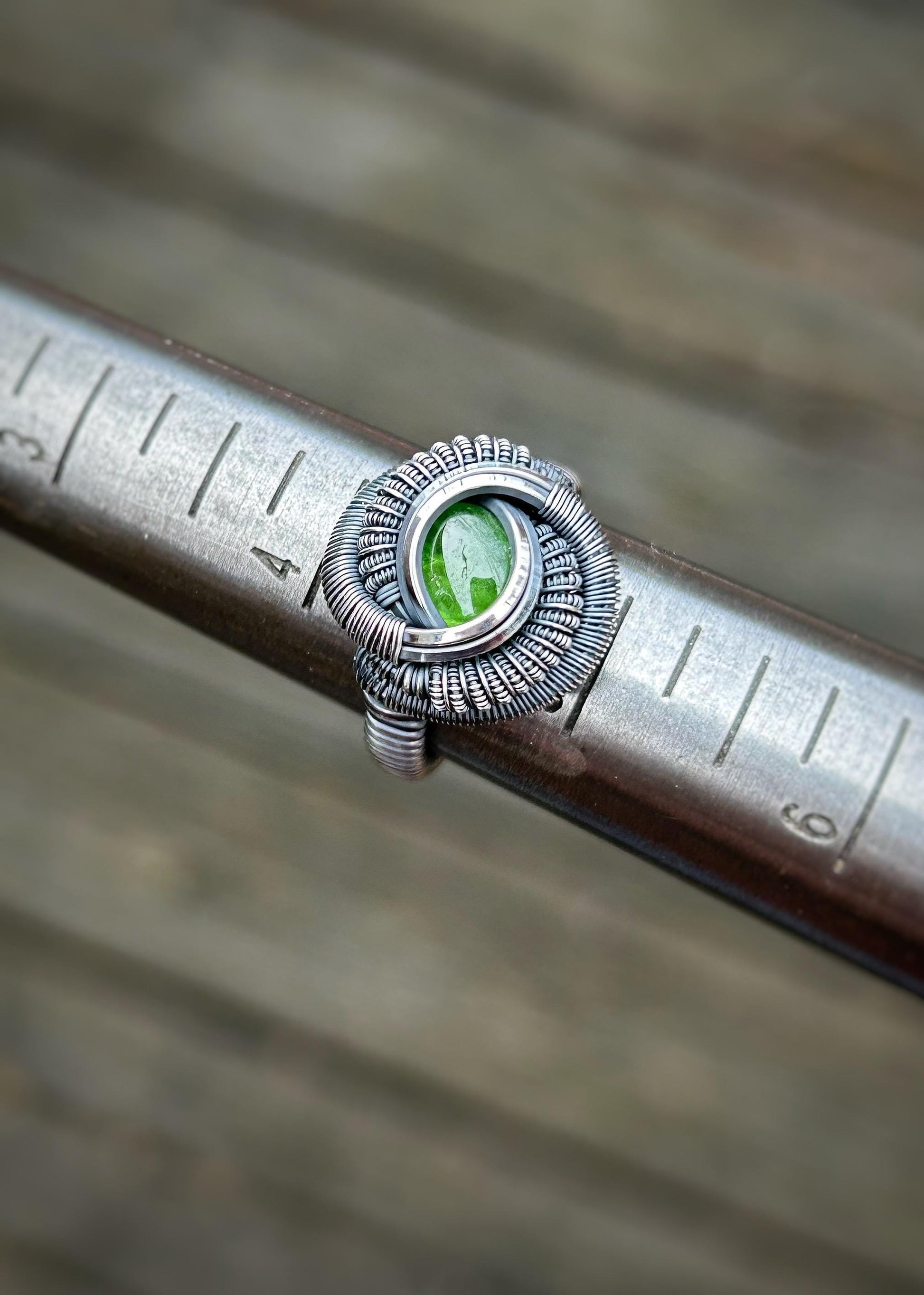 Tsavorite Garnet Ring // Size 4.5 // Oxidized/Polished Sterling Silver // Wire Wrap // Green Garnet // Comfortable // Handmade